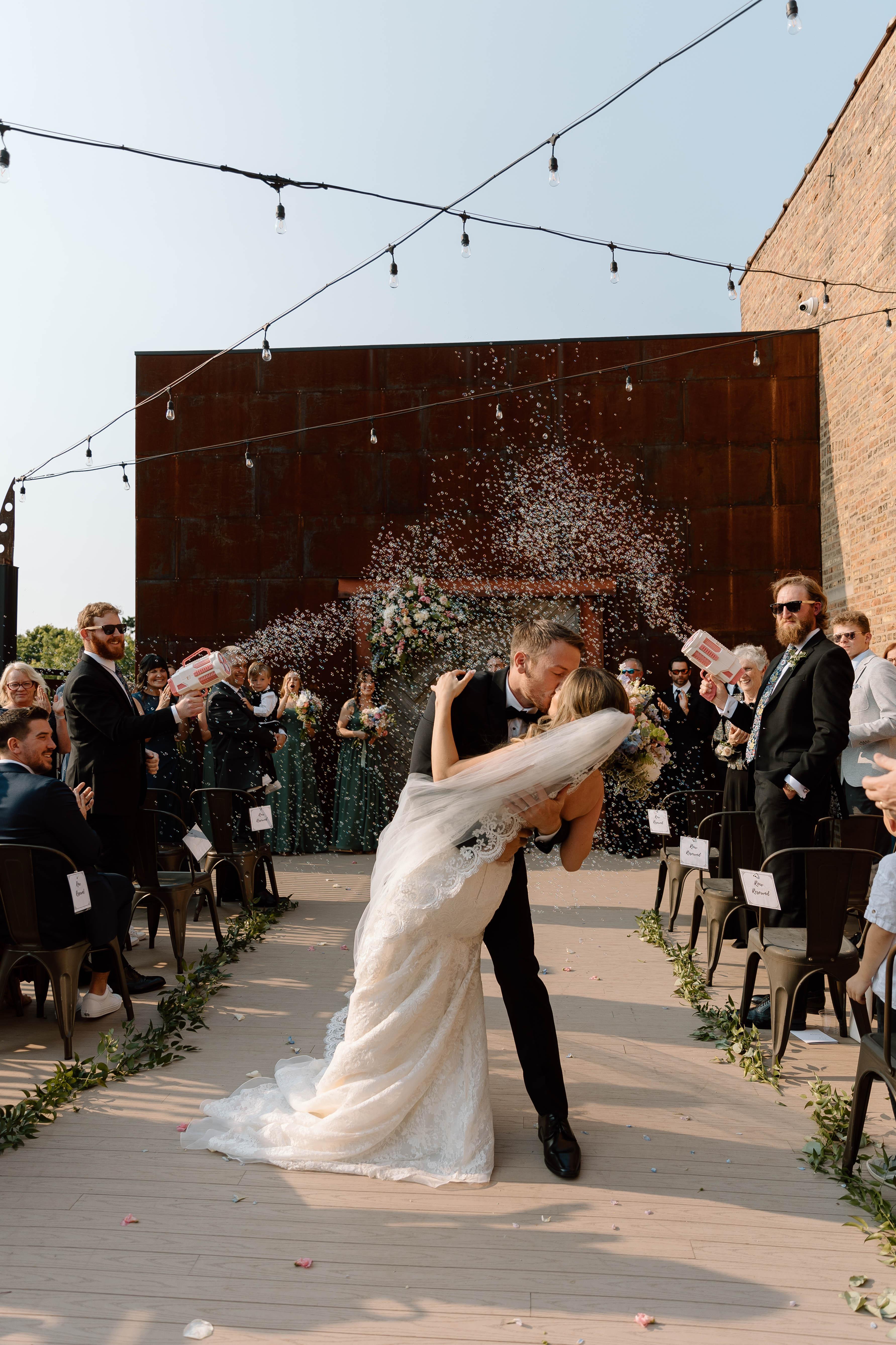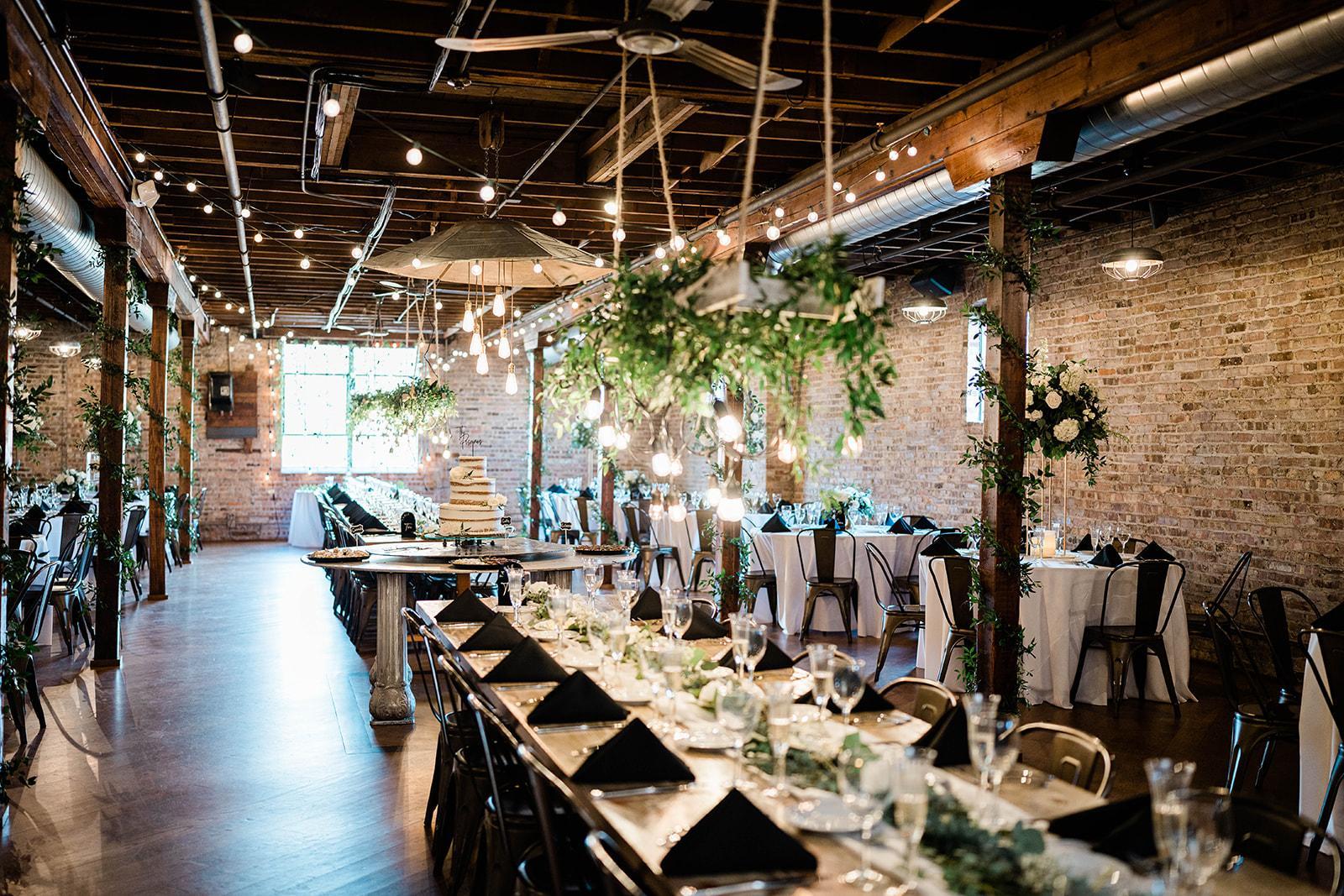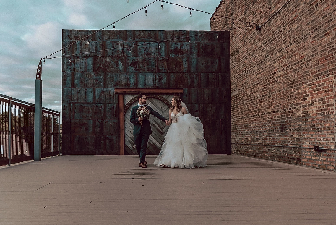 The Haight is a wedding and event venue located in Elgin, IL and is enveloped by a historic neighborhood, for a romantic and storied setting for your wedding. This converted warehouse was originally constructed in the 1890s. It began as the Elgin Storage & Transfer Company. Over the years numerous companies used the building until 1985 when it was bought by John Haight, who refurbished the building. The Haight features two floors and a rooftop area. Brick walls and hardwood flooring accent exposed ductwork. There are multiple spaces for hosting your ceremony, reception, and many other wedding-related gatherings. On the first floor, there is room for up to 175 guests standing. This makes the 2,000-square-foot space ideal for the cocktail reception. The second floor features 7,000 square feet of space. 250 people seated or 200 people seated with a dance floor can fit in this event area. You can also take your celebrations outside on the spacious rooftop deck.