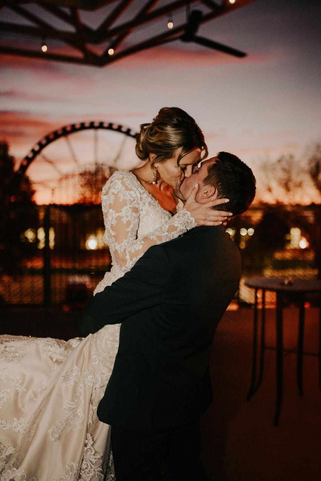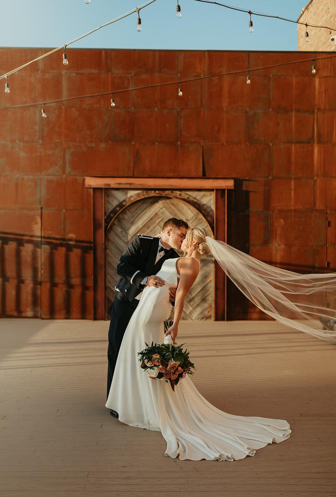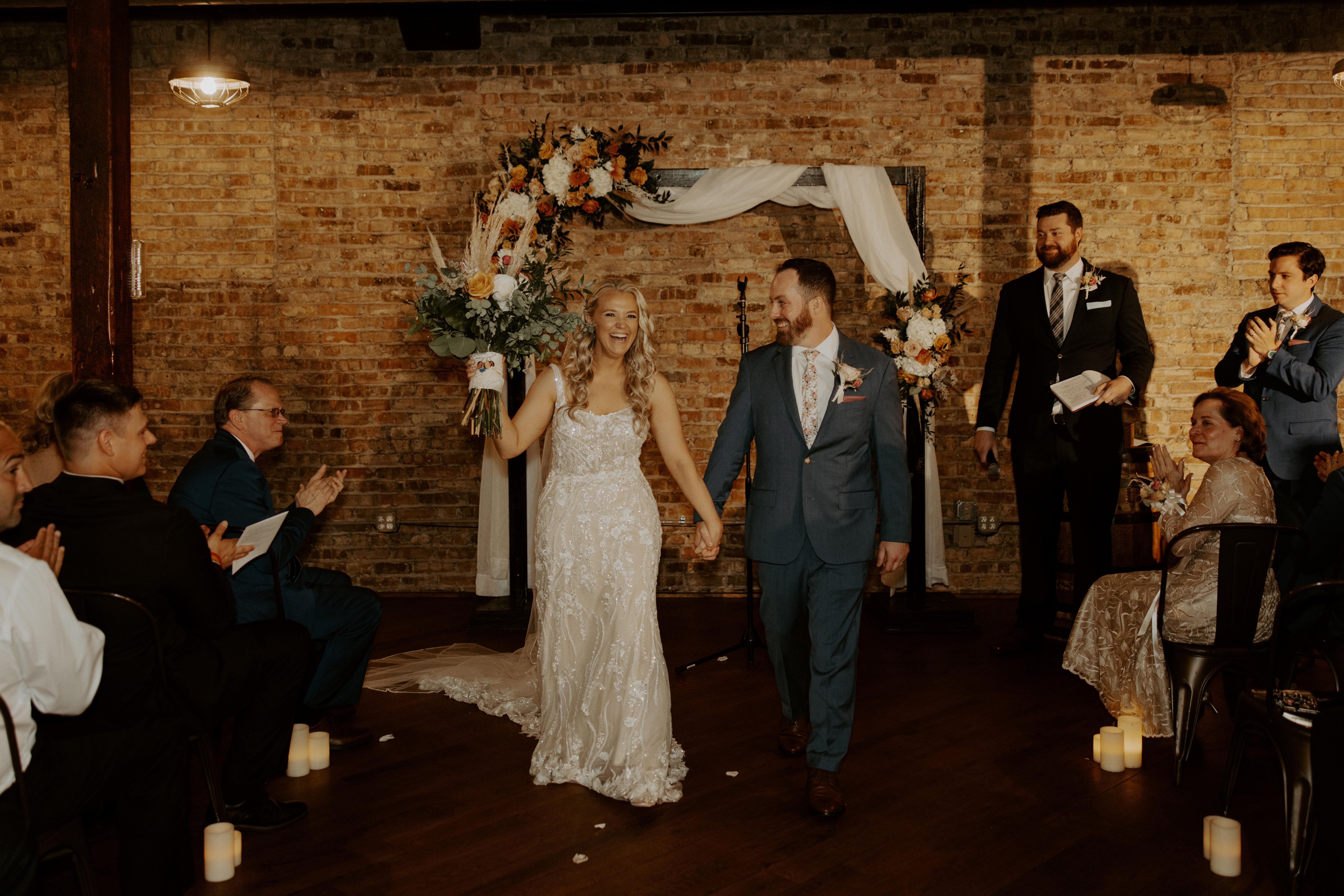 The Haight is a wedding and event venue located in Elgin, IL and is enveloped by a historic neighborhood, for a romantic and storied setting for your wedding. This converted warehouse was originally constructed in the 1890s. It began as the Elgin Storage & Transfer Company. Over the years numerous companies used the building until 1985 when it was bought by John Haight, who refurbished the building. The Haight features two floors and a rooftop area. Brick walls and hardwood flooring accent exposed ductwork. There are multiple spaces for hosting your ceremony, reception, and many other wedding-related gatherings. On the first floor, there is room for up to 175 guests standing. This makes the 2,000-square-foot space ideal for the cocktail reception. The second floor features 7,000 square feet of space. 250 people seated or 200 people seated with a dance floor can fit in this event area. You can also take your celebrations outside on the spacious rooftop deck.