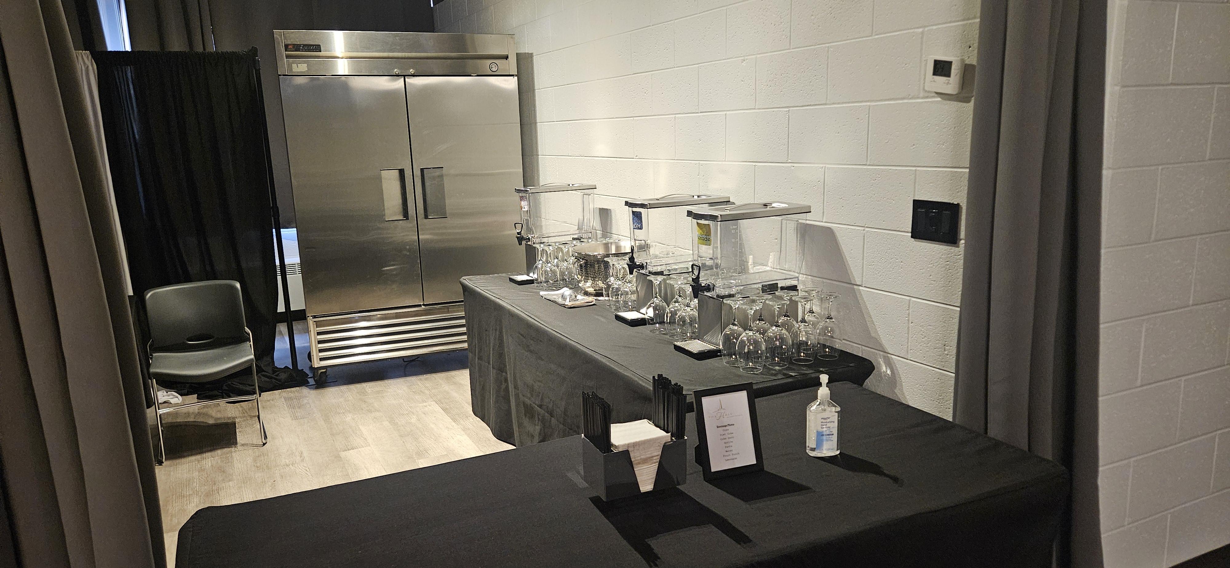 A separate space for your guests to select their drinks, mingle, and choose their dinner options.