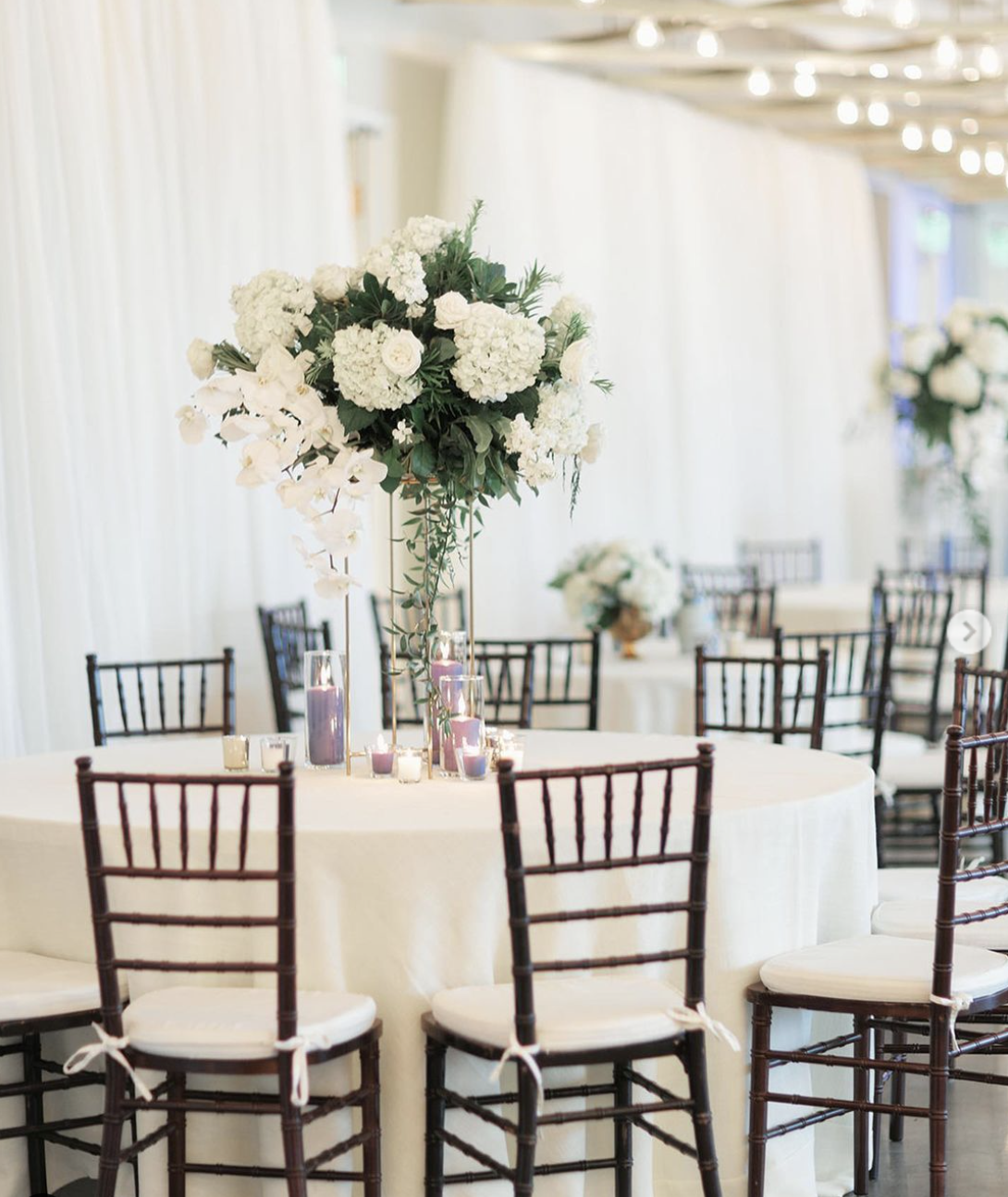 The use of sleek linenless tables, cocktail tables and chairs are all complimentary and there is also the unique, hand-painted pineapple bar for the full bar experience. Additionally, we have an in-house audio sound system for speeches and announcements and flat screen TVs throughout to showcase photos and images for the event.