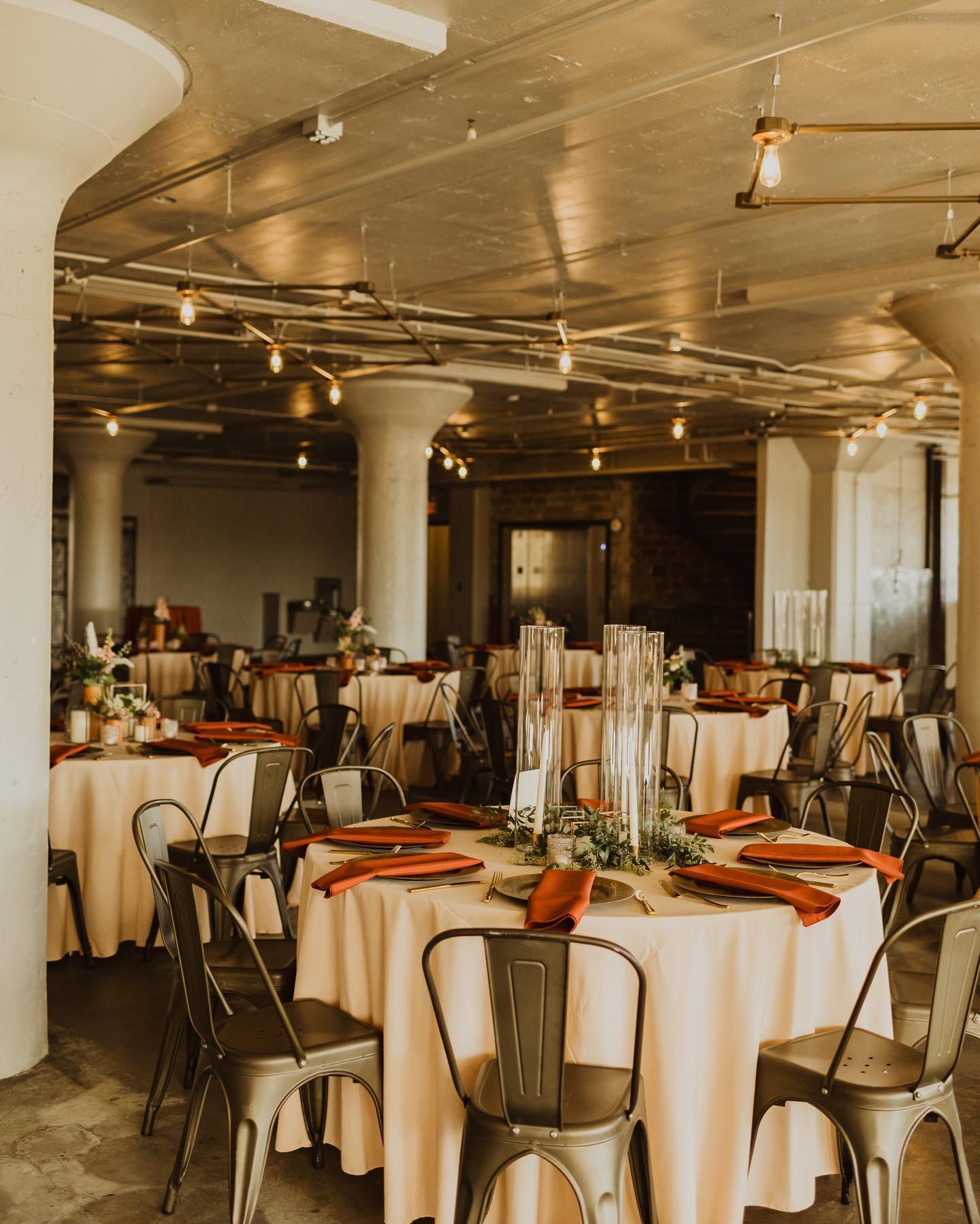 Luxurious on-site suites for BOTH of you! 100 on-site, downtown parking spots (90 more 1/2 block away) One-of-a-kind urban / industrial vibe Spacious, 600 square foot catering kitchen Close proximity (walking distance) to local bars and hotels Picturesque locations for indoor & outdoor photography Complimentary tables, chairs, floor-length linens & glassware