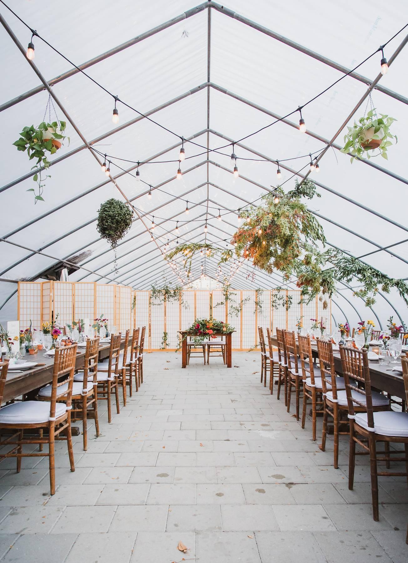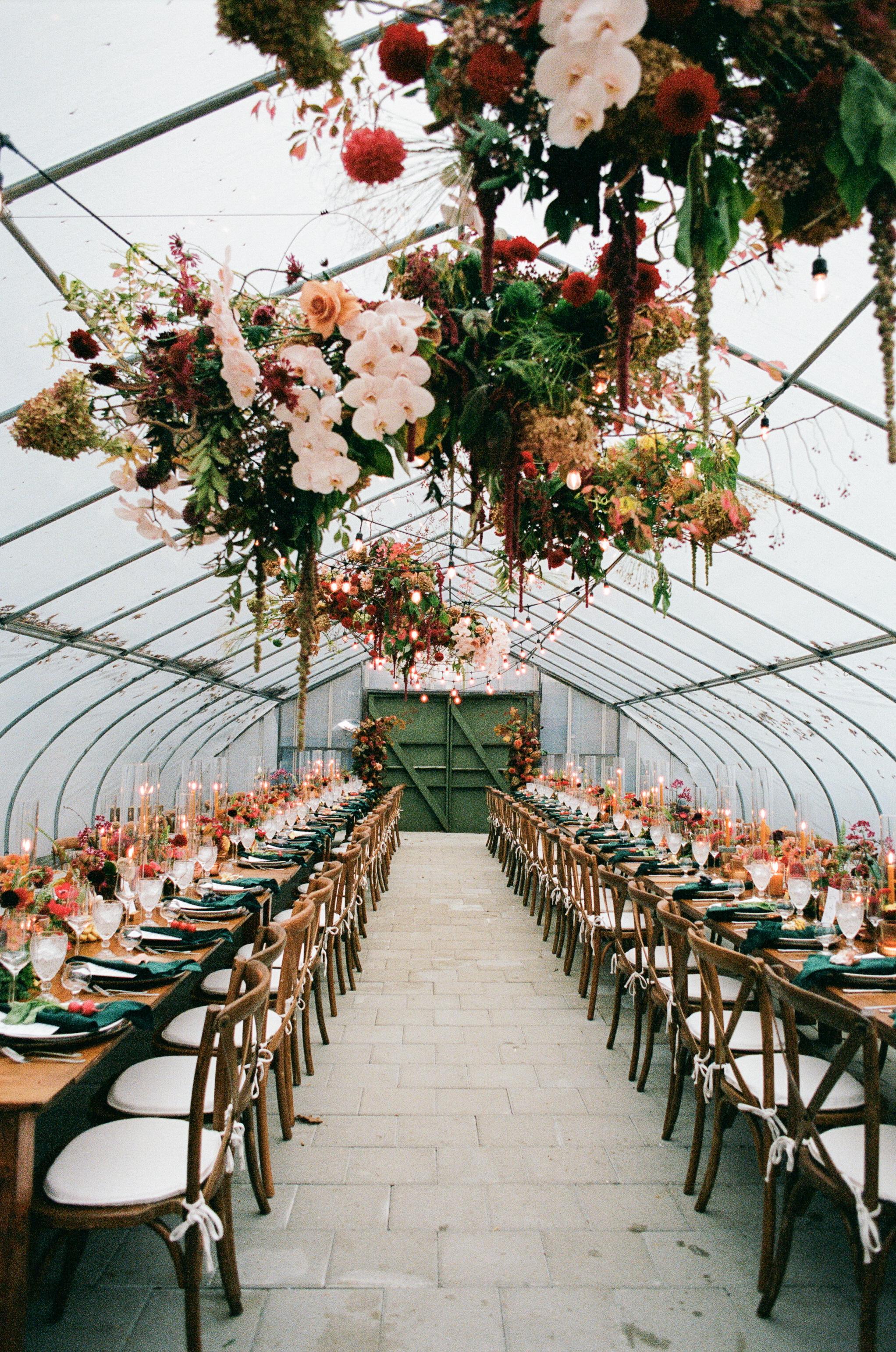 Our 3,000 square foot greenhouse paired with wooden farm tables is your canvas - from a minimalist and chic nature vibe with herb pots, string lighting and hanging plants, to layers of lush botanical bliss, you bring your inmost vision and we help make it a reality.
