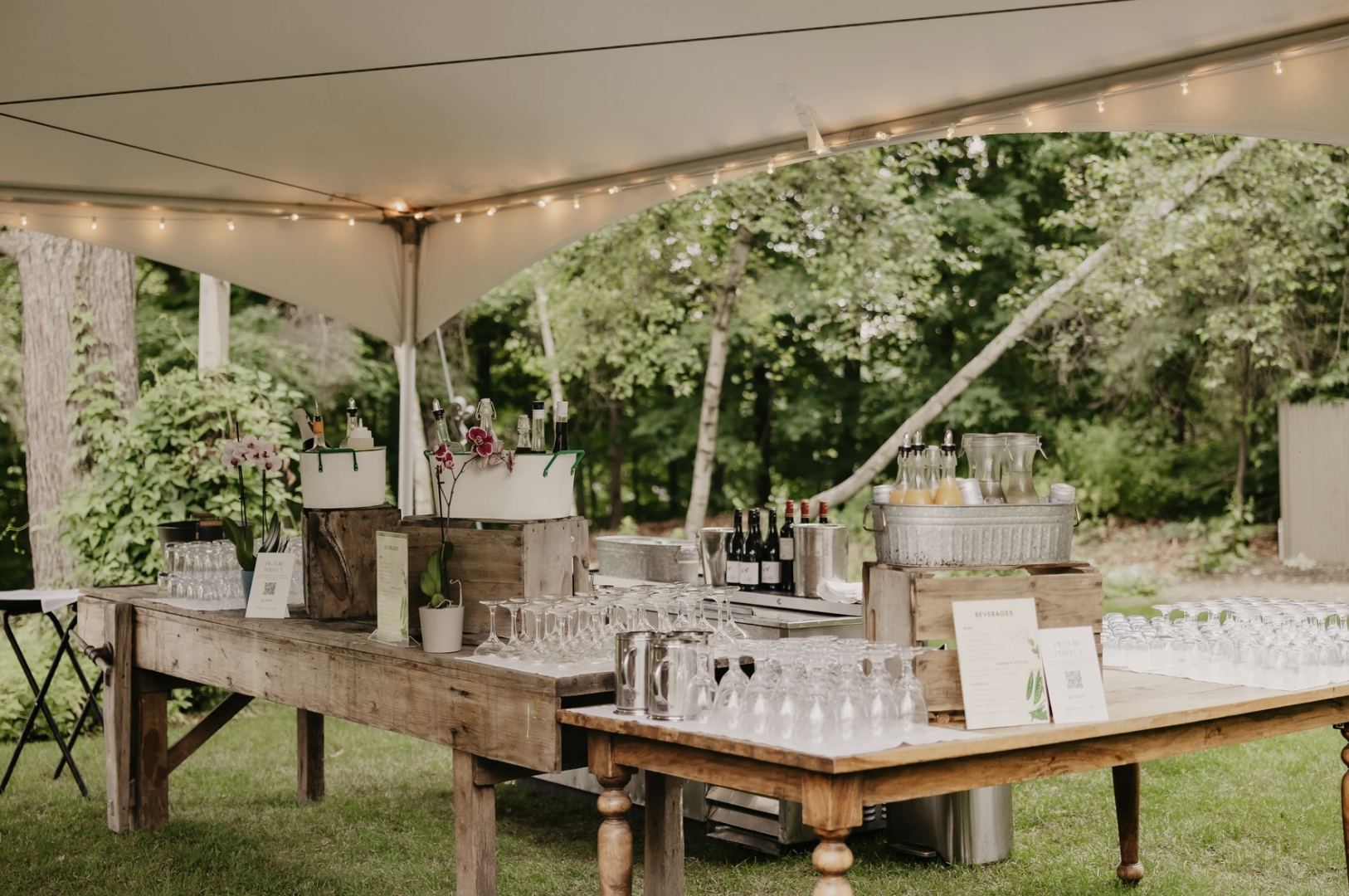 String Lighting Full Power Access for your vendors Farm Tables Chairs Plates, Glassware, Flatware Heaters or Fans, depending on the season A sense of magic & reverie Event Staff to help with Setup and Breakdown