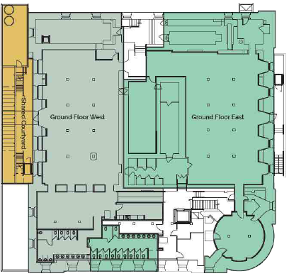 Private entrance on Jones St Catering Kitchen Access 20 Luxury Restrooms Multiple Room Options Historic safe deposit vaults Customized furniture options