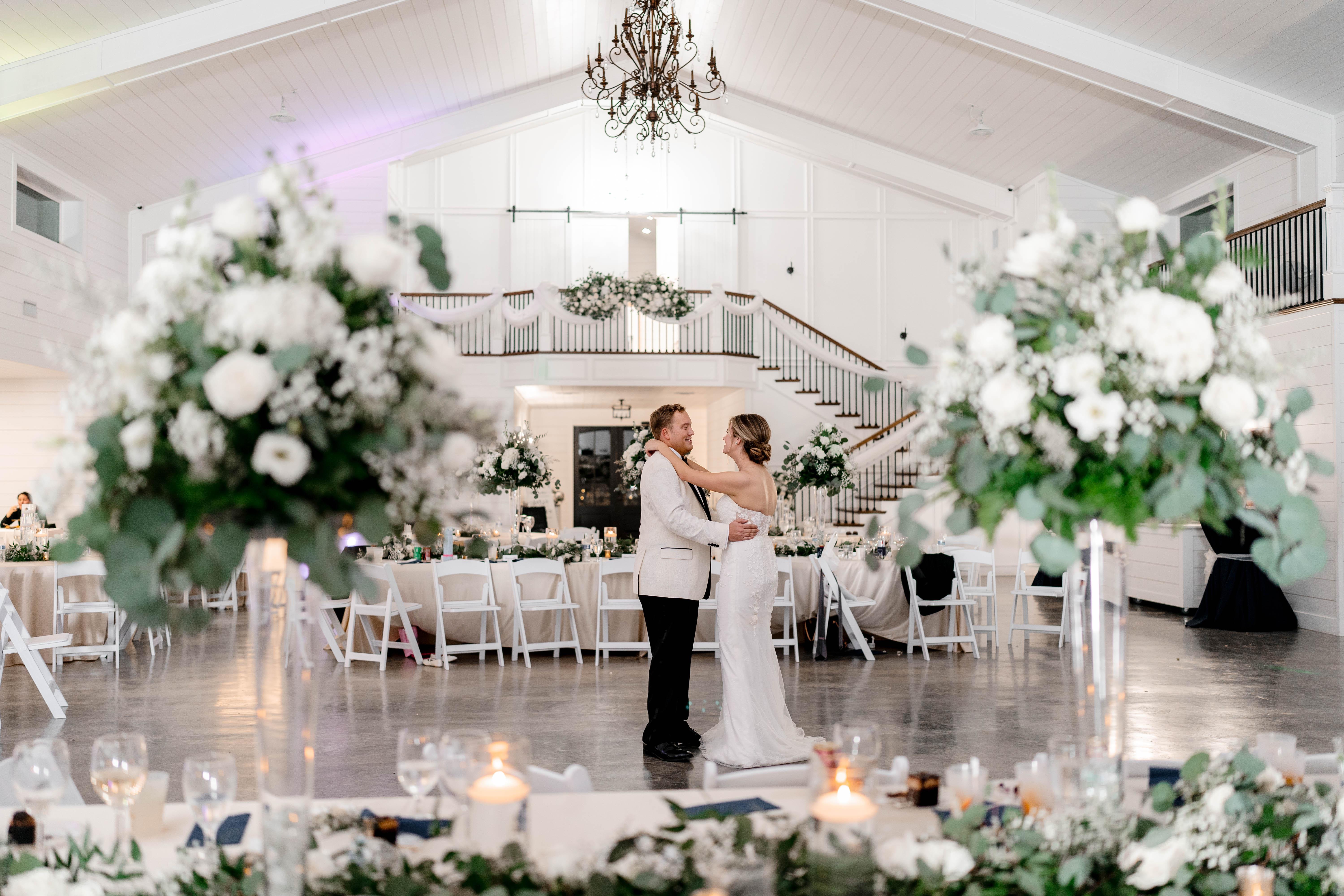 Peaceful scenic views; 9,400 square ft venue; Indoor & outdoor wedding ceremony options; table & chairs set up to your floor plan; Breathtaking bridal suite w/private full bathroom, makeup stations, full-length mirror, kitchenette, lounge area, Covered patio space; Kitchen includes 3 ovens, 2 refrigerators, ice machine, and serving island; and a bar area. Fully decked groom’s cabin w/private full bathroom, full kitchen, TV, ping pong, gaming accessibility, catch and release fishing, and WiFi.