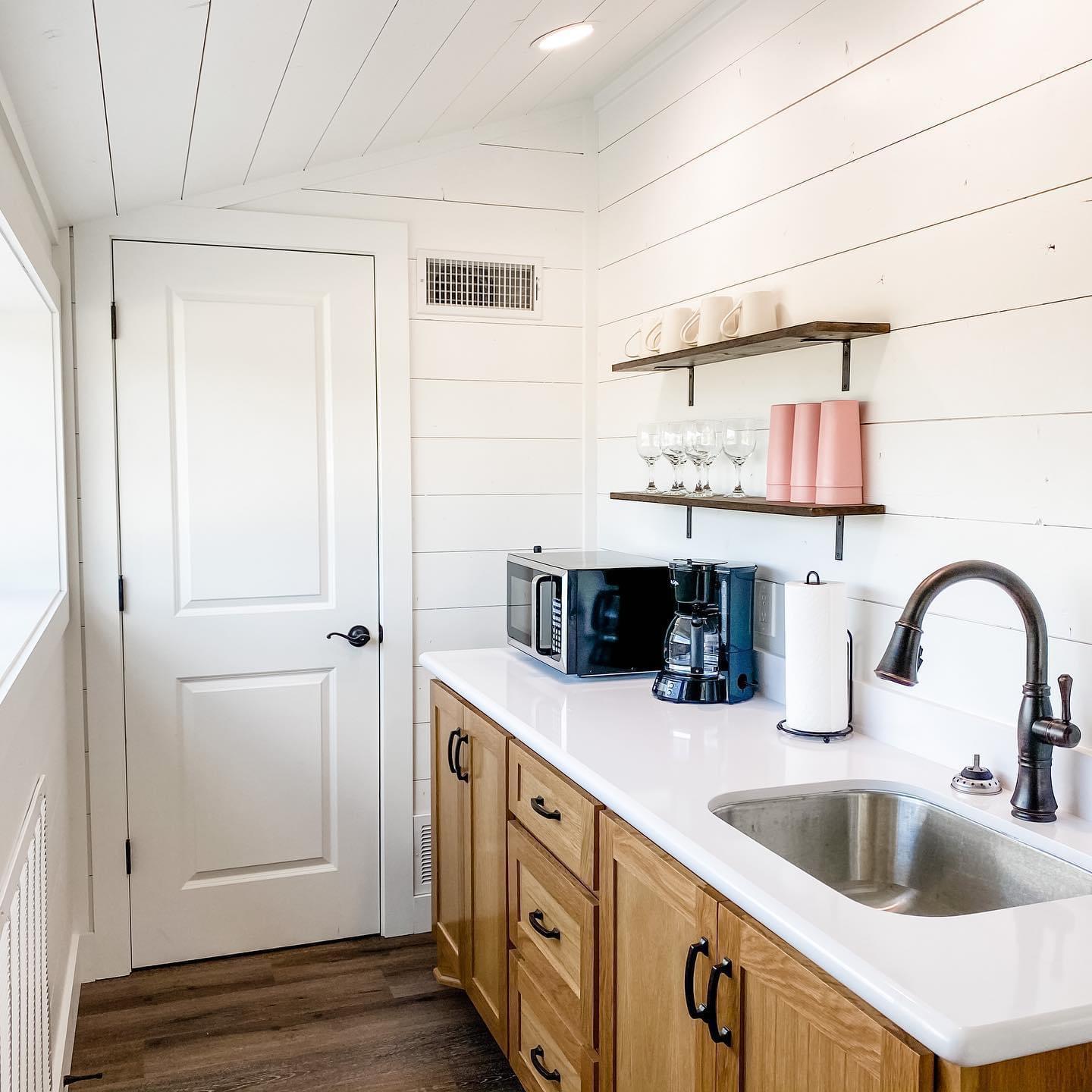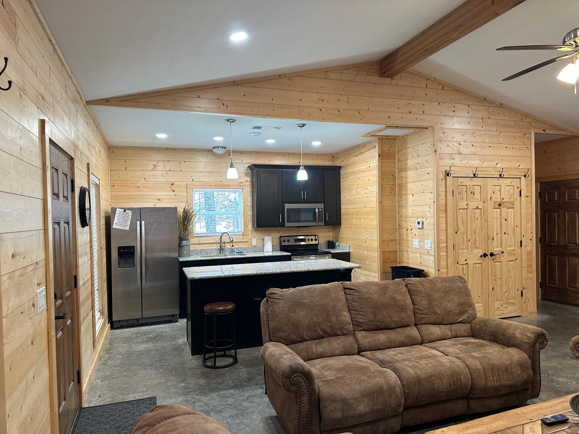 Our groom's cabin is the perfect space for the guy's to gather on your wedding day. The cabin has a full kitchen, full bathroom and living room. We have a ping pong table as well. They can enjoy the TV or the great outdoors with catch and release fishing.