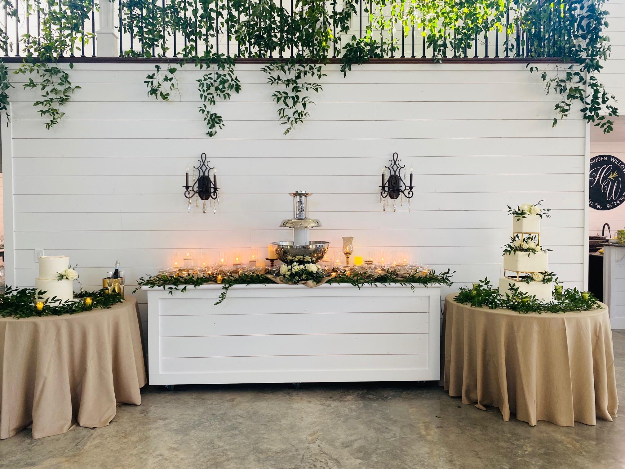The Hidden Willow has endless and perfect backdrops for your big day. The area includes a grand staircase for the couple’s grand entrance. You and your guests can enjoy an enormous reception space. The bar area, caterer’s kitchen, fireplace, photographer’s loft and large guest bathrooms were designed with every guest in mind.