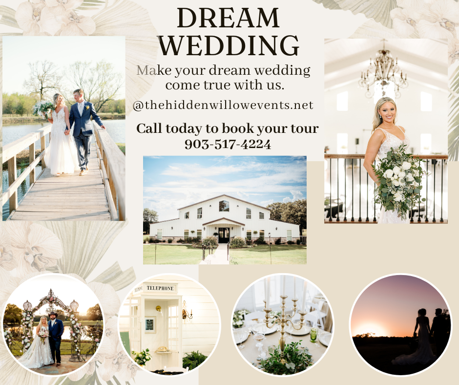 Tucked away in the beautiful countryside outside of Paris, Texas. The Hidden Willow is a family-first wedding and event venue ready to serve you a modern southern experience. This hidden gem is a privately owned property full of beautiful sunsets, generous views of rolling greenery and peaceful lakes while secluded with all the scenic southern comforts. This custom-designed venue is ready to capture you and your loved ones' hearts with cherished memories and an experience of a lifetime. We are honored to make your dreams come true and hope that the Lord has blessed you with the person you will call your forever. We can’t wait to be a part of your love story. The Hidden Willow is custom-designed with each guest in mind to create the most magical event on your very special day. We thrive on our attention to detail and would love to be the scenery for your forever after.