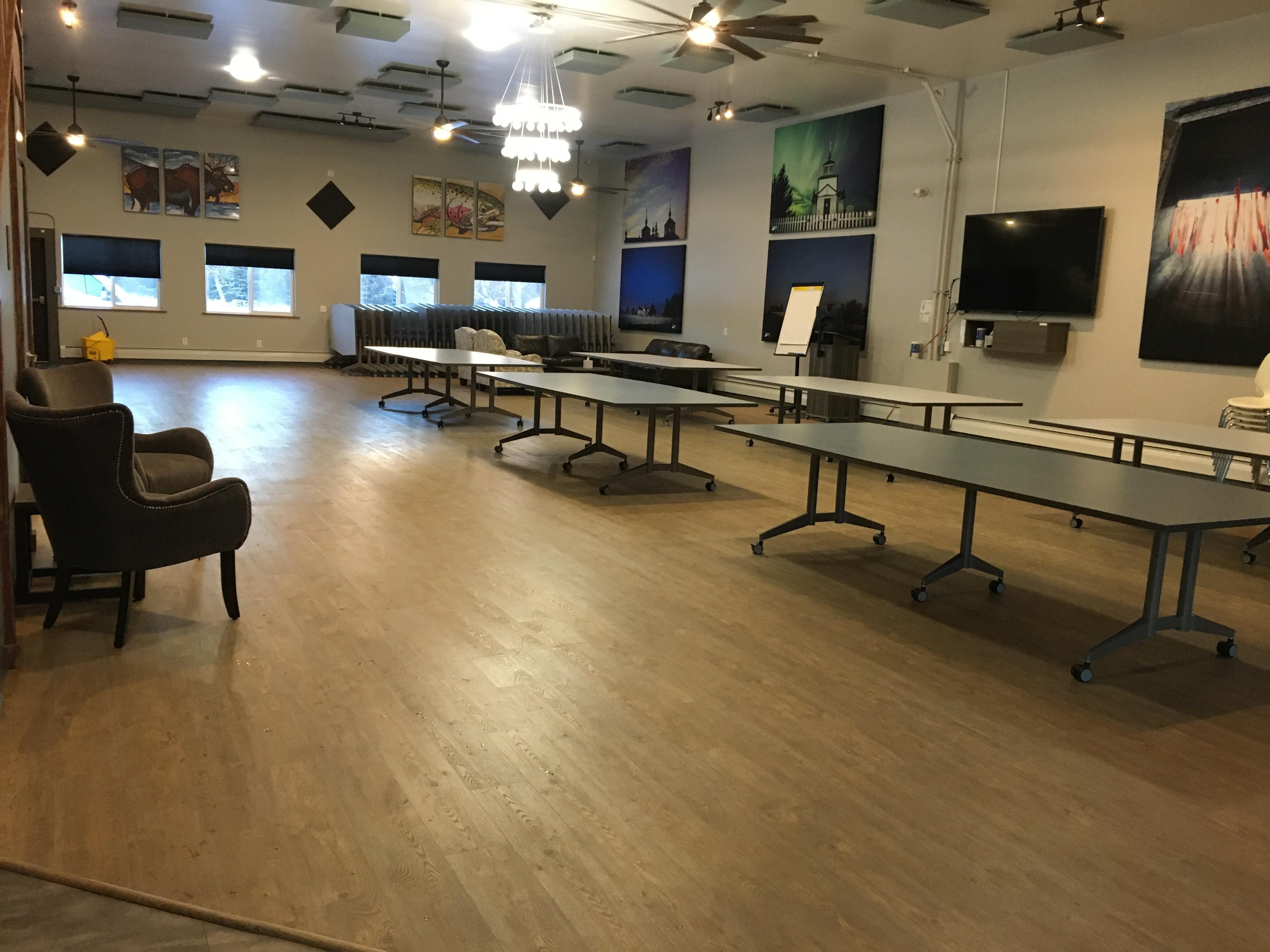 - 2100sq. feet common room -full kitchen -commercial dishwasher, -24 8’ rectangular tables -6 4’rectangular tables -3 12’ rectangular tables -108 chairs -Wi‐Fi