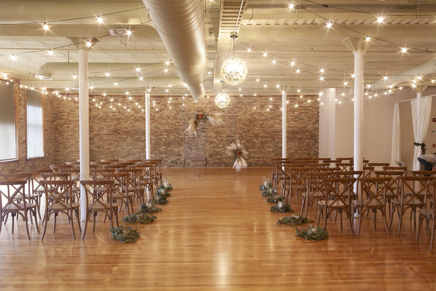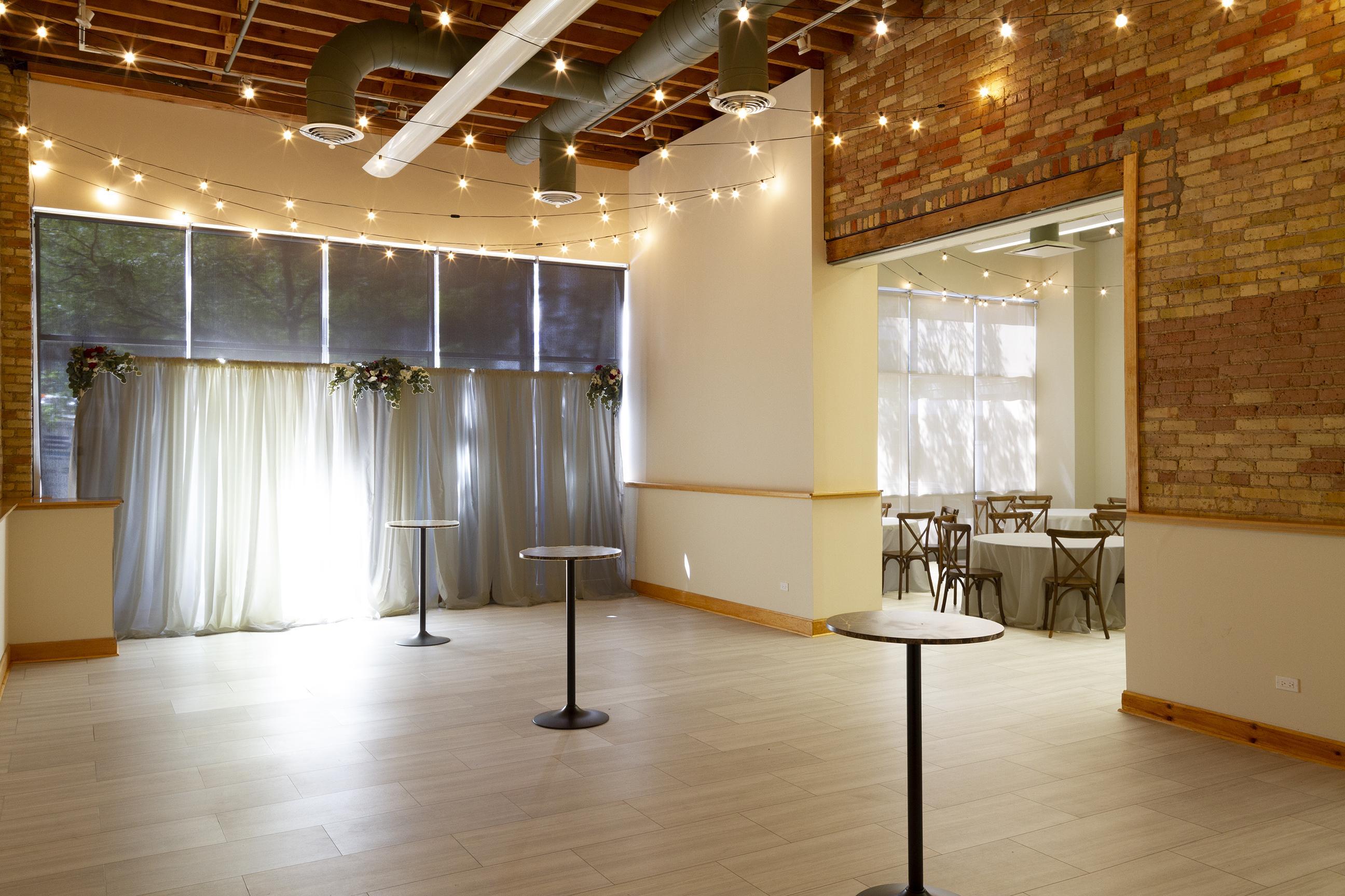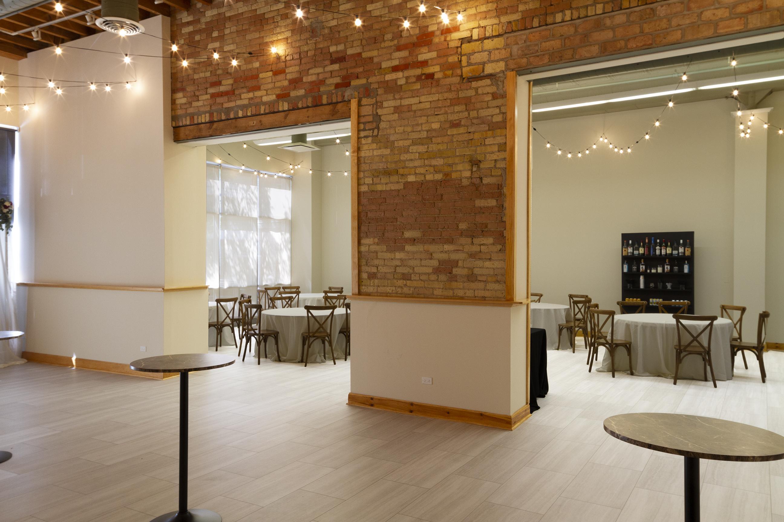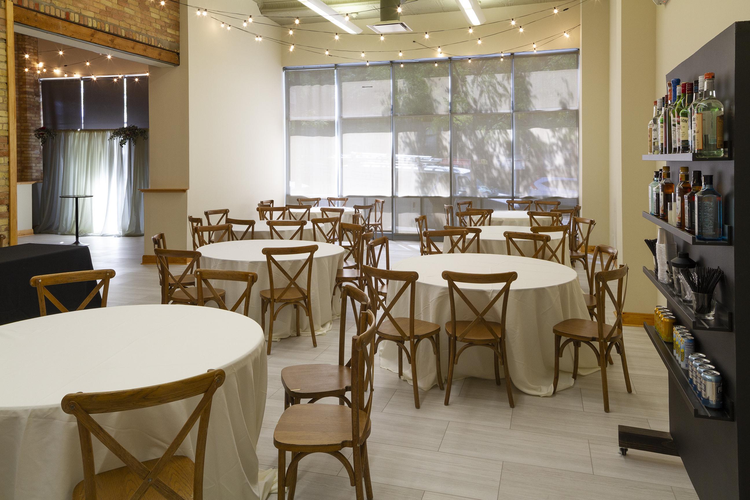 The First Floor space at The Highland Loft is perfect for micro-weddings, bridal showers, after parties or other smaller events. This space includes tables and chairs, and can accommodate up to 80 guests.
