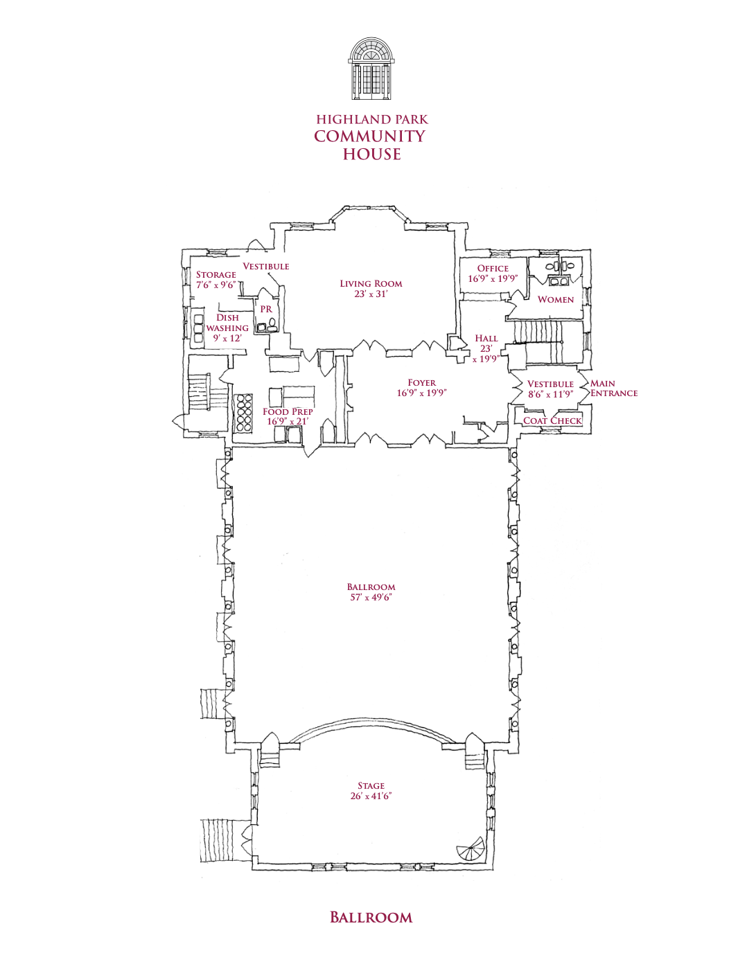 Our Heritage Garden adjacent to the Community House provides an unusual setting for events in spring, summer and early fall. An ever-changing panorama of color, this beautiful retreat is a grand extension of the ballroom and weather permitting allows guests an opportunity to enjoy the beauty of the garden along a winding brick pathway. The garden remains a living heritage to Jesse Lowe Smith, a beloved school superintendent of Highland Park who for more than 30 years guided the education of the children of Highland Park and instilled in them a sense of national and community pride. The garden also is a welcome respite to the community as a place for study, relaxation and enjoyment.