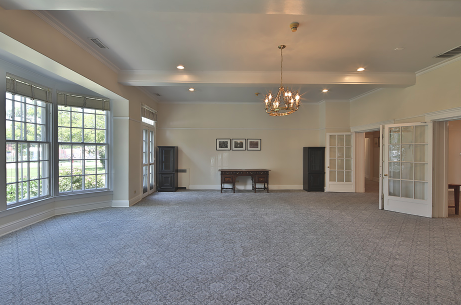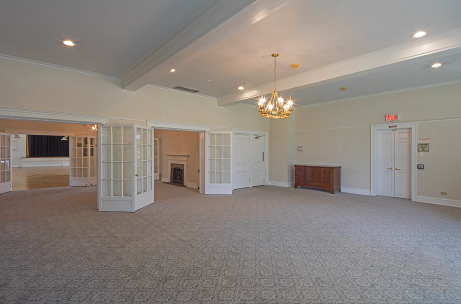 Our more intimate living room with large bay windows can seat up to 100 attendees and is available for smaller events, programs, meetings and lectures. When combined with the foyer, 200 guests can be accommodated for a standing reception.
