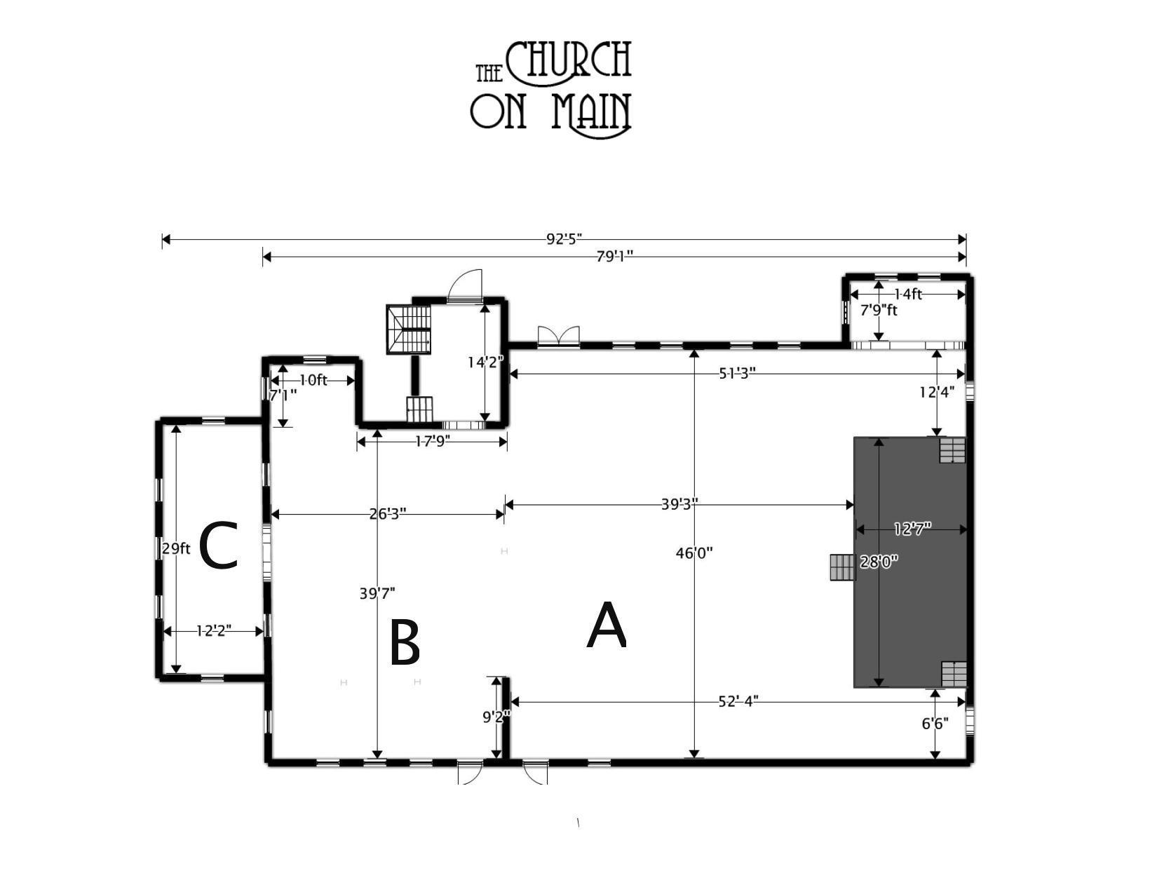 - Bistro Lights on a dimmer - Arched mirrors - Natural lighting from our large arched windows - Stage - Curtains to separate the space - Wheelchair ramp access - TV's for a slideshow