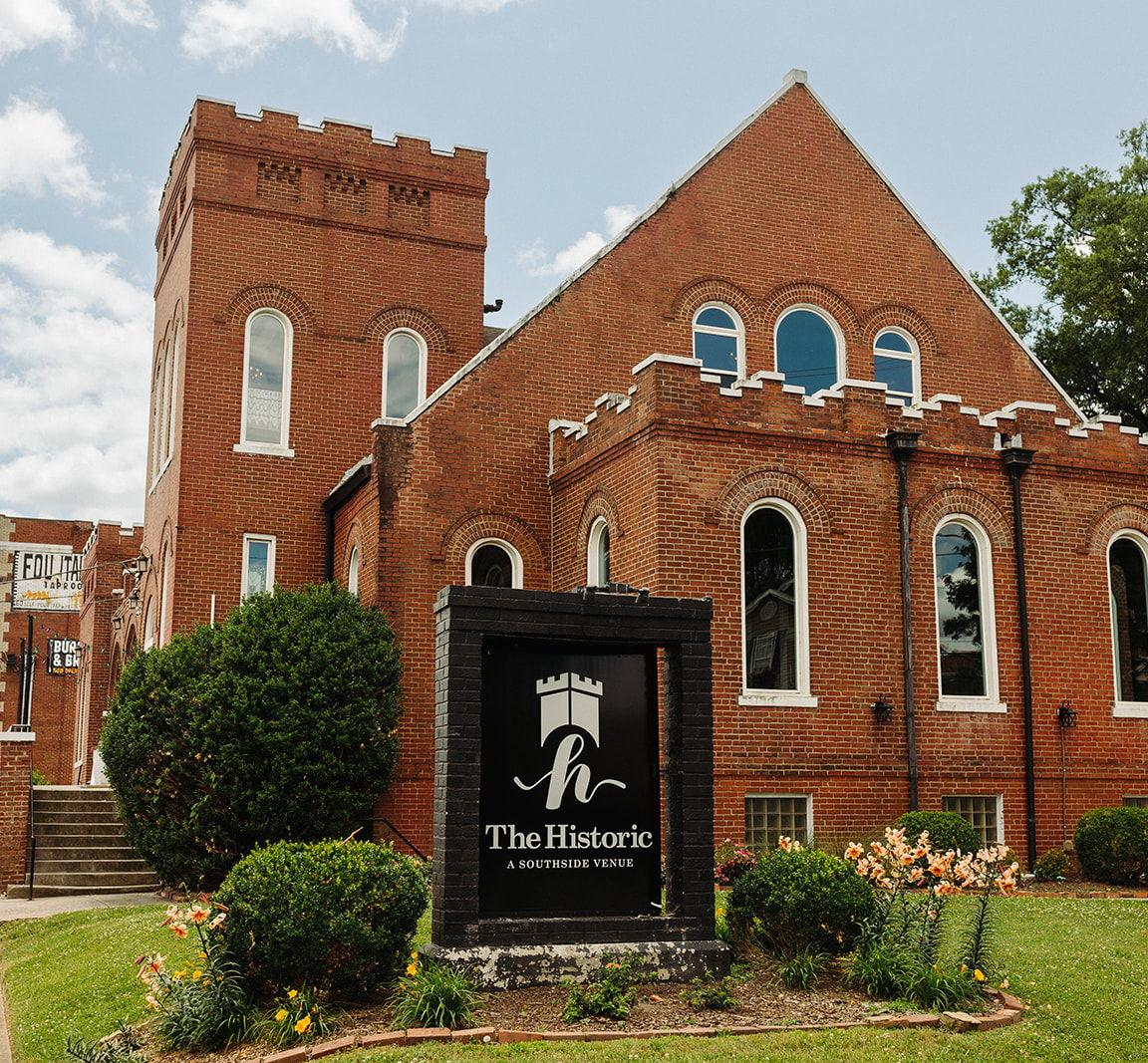Our historic venue was originally a church built in 1904 and renovated in 2011. We are known for having beautiful exposed brick, large arched windows providing lots of natural lighting, and unique spaces all over the property for special, picture-perfect moments.