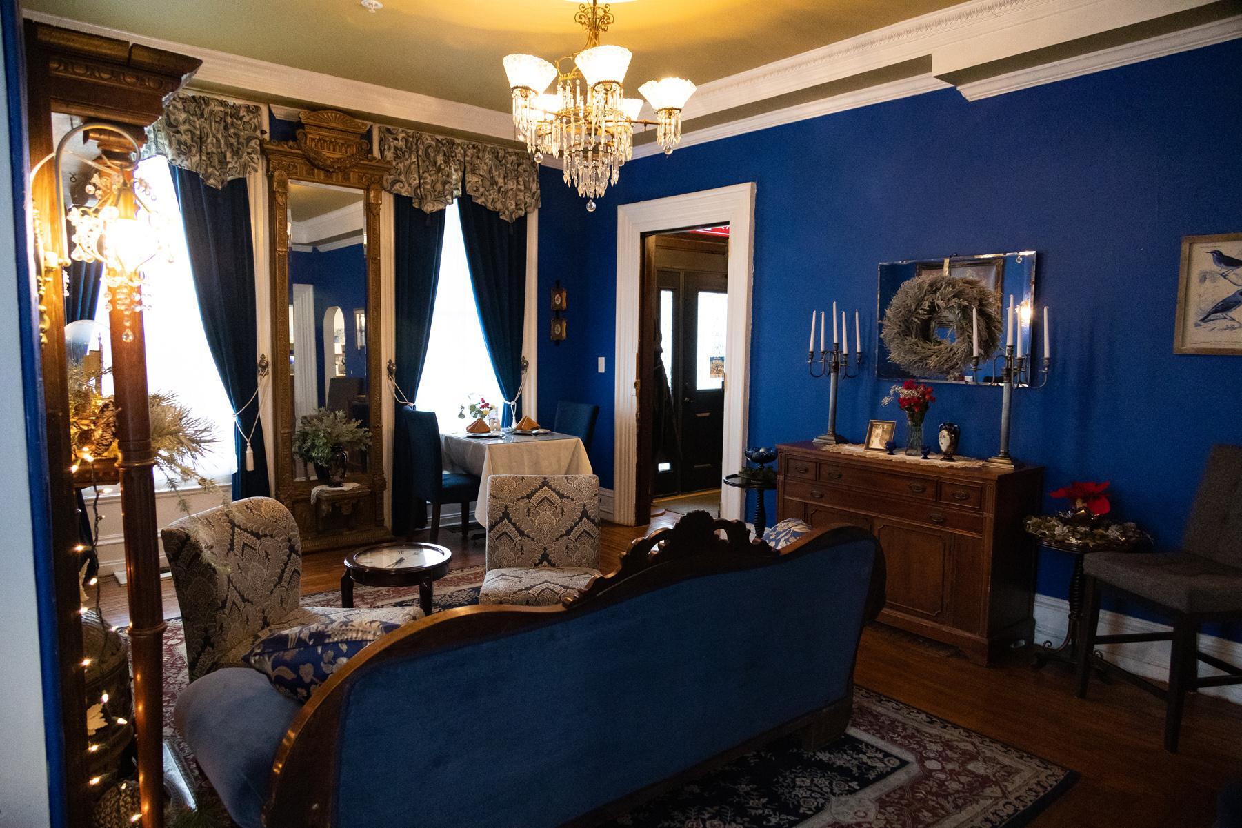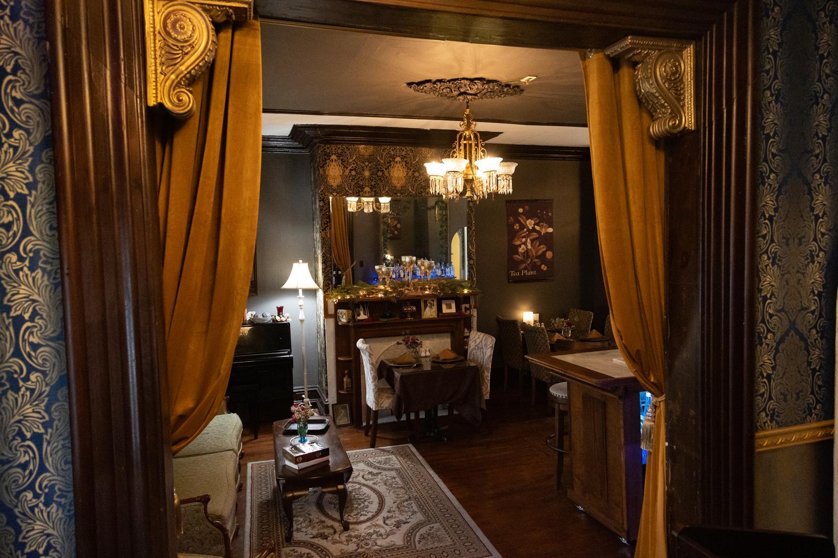 This space is an intimate Victorian room that is perfect for small gatherings. It is part of three rooms that can be combined for a larger gathering.