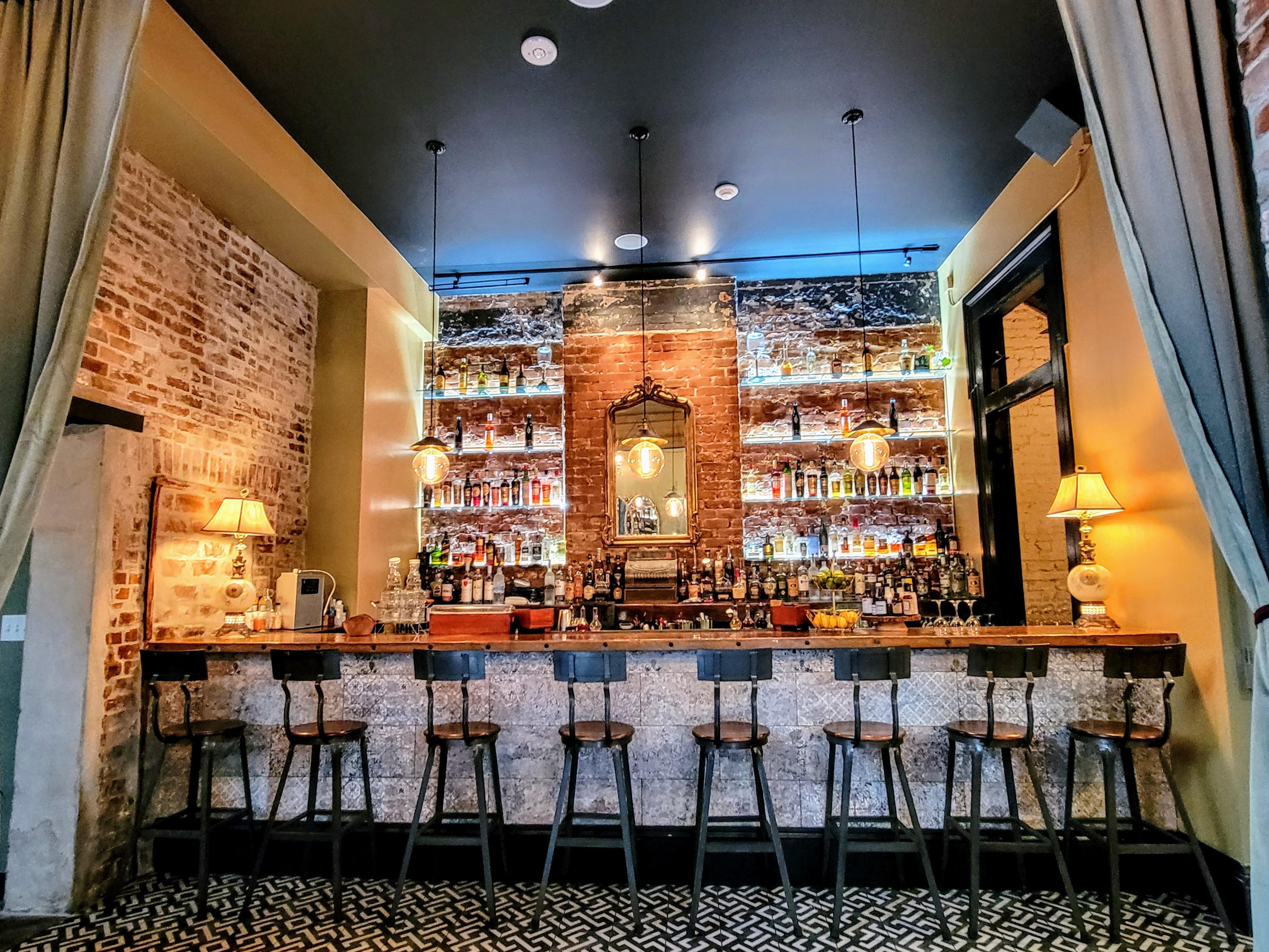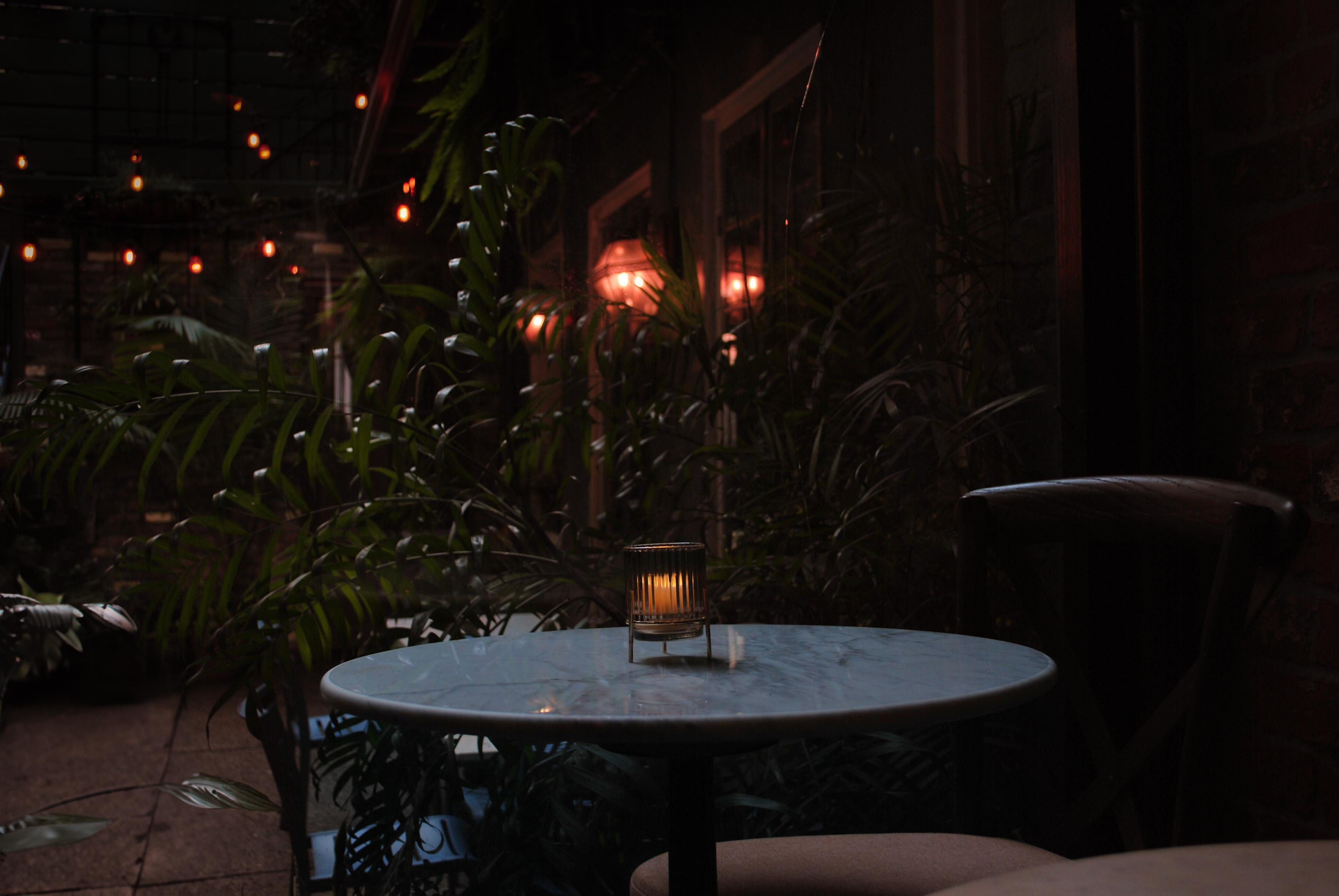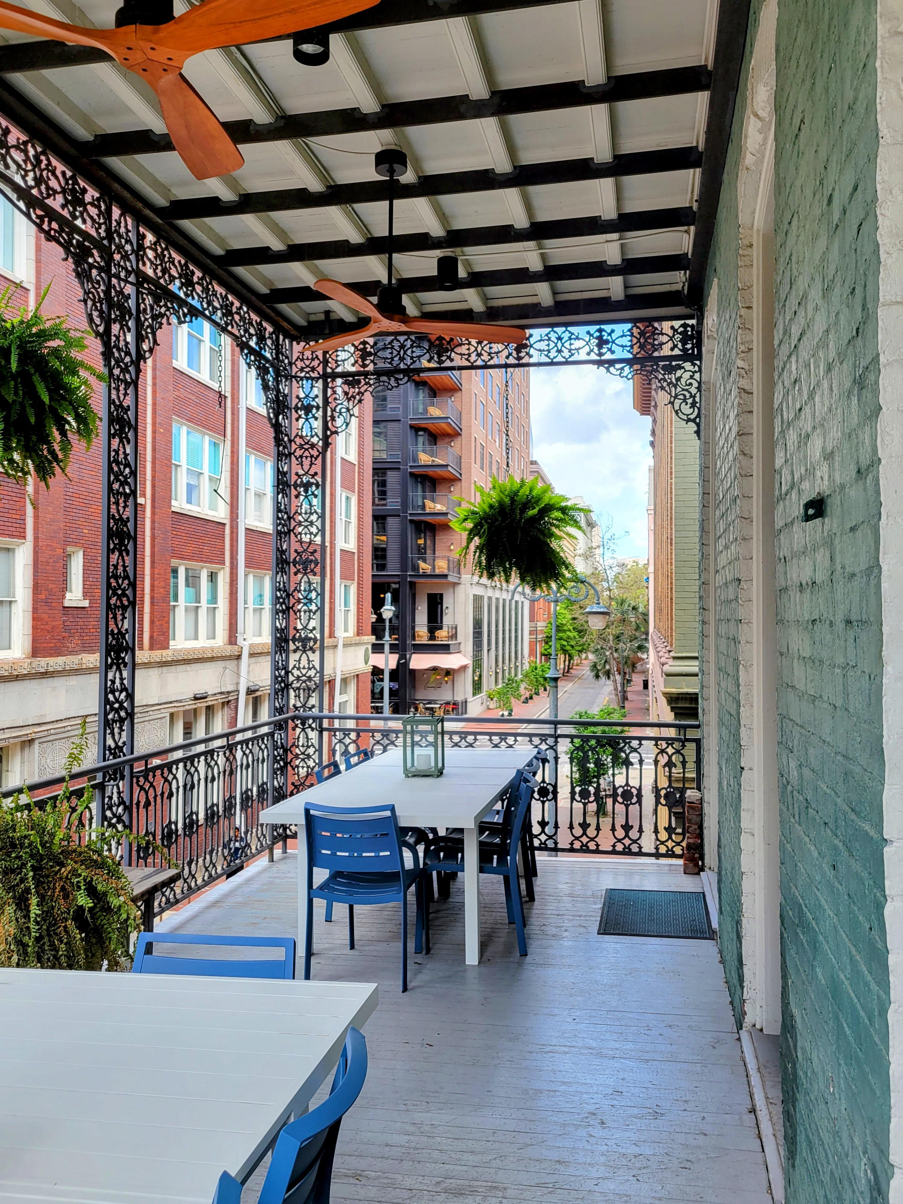 The main floor dining, bar and courtyard is part of a venue buyout that includes the 2nd floor parlor and balcony.