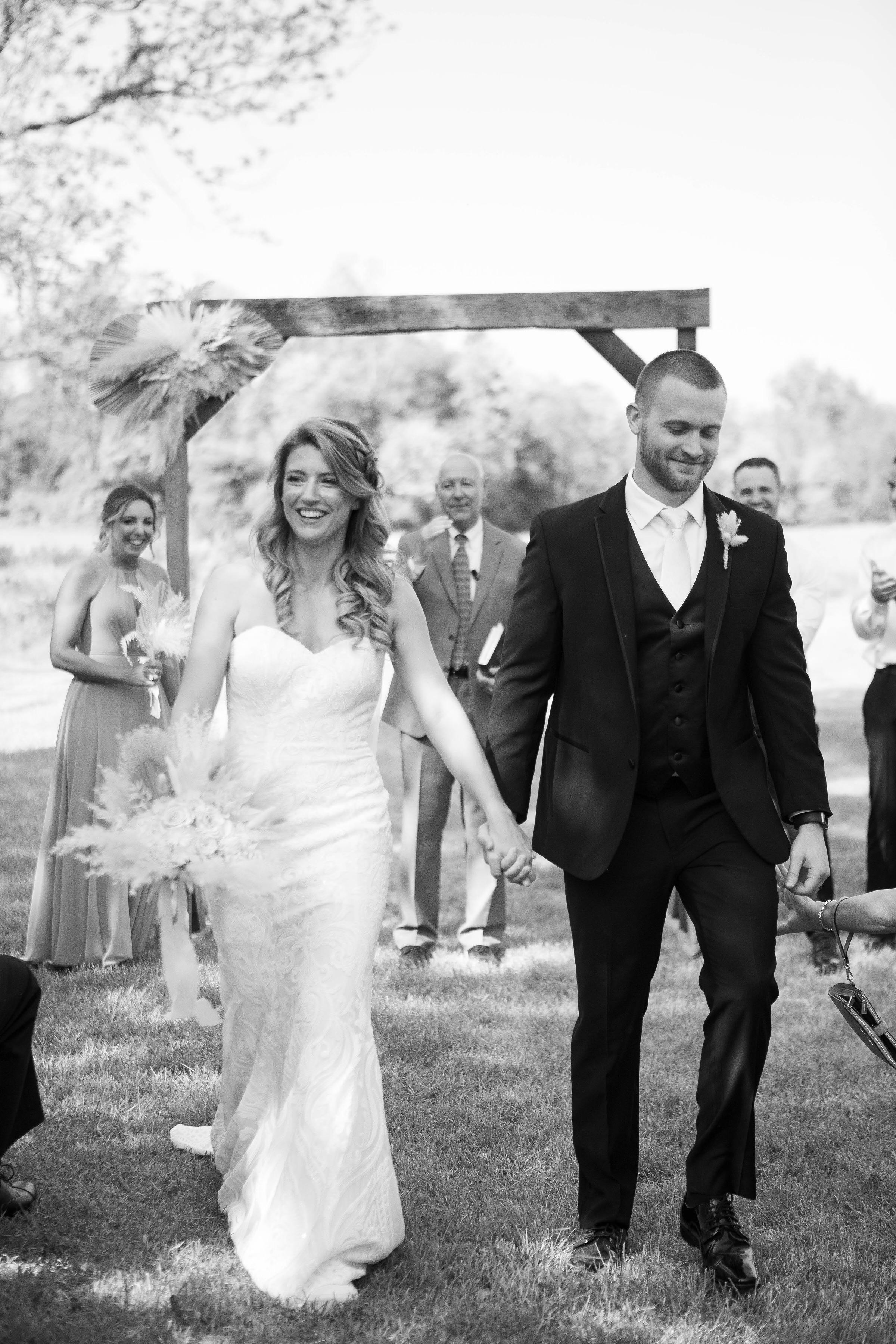 Our outdoor ceremony space includes multiple choices of beautiful backdrops. Overlook the farm, the wooded yard or the hidden creek.