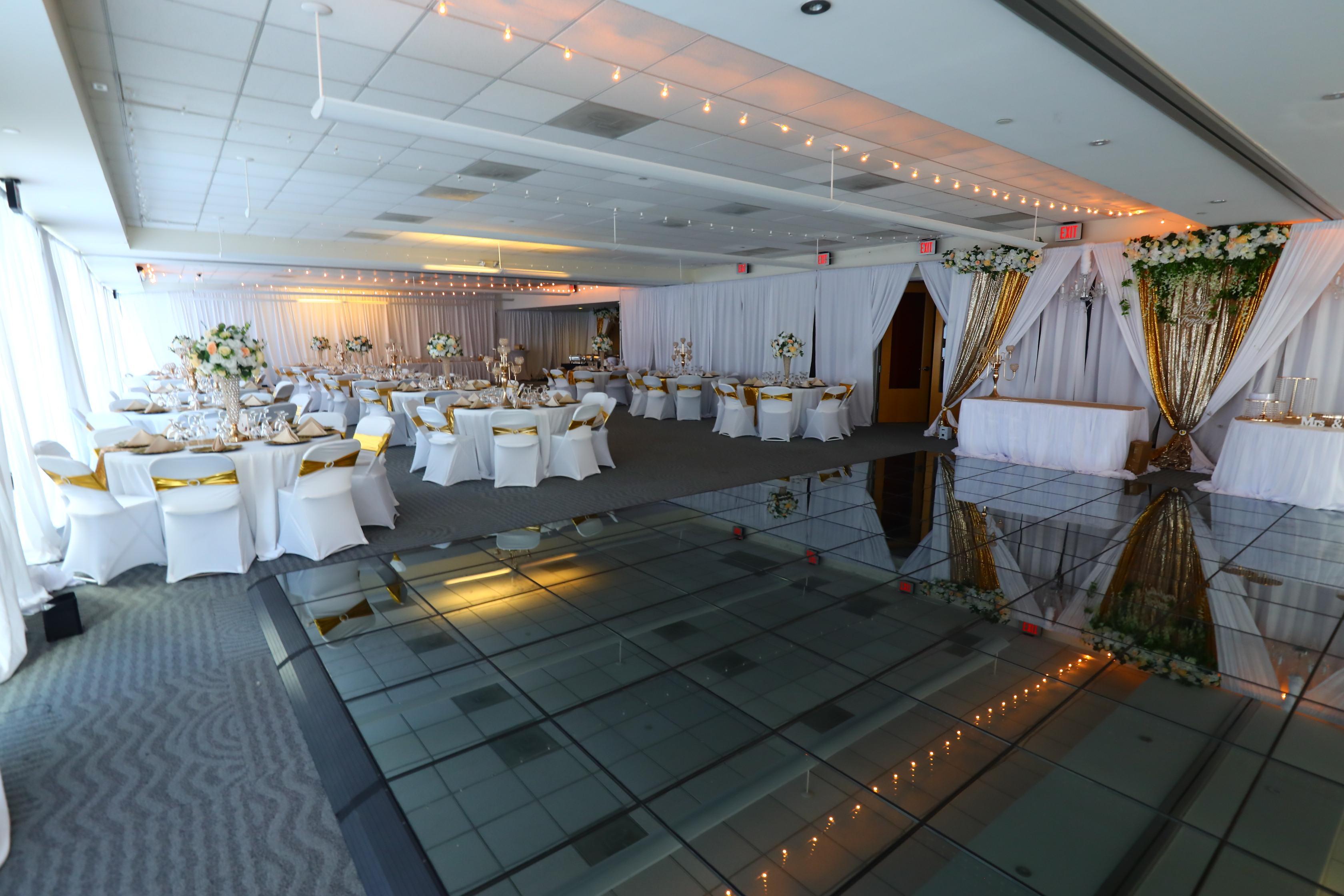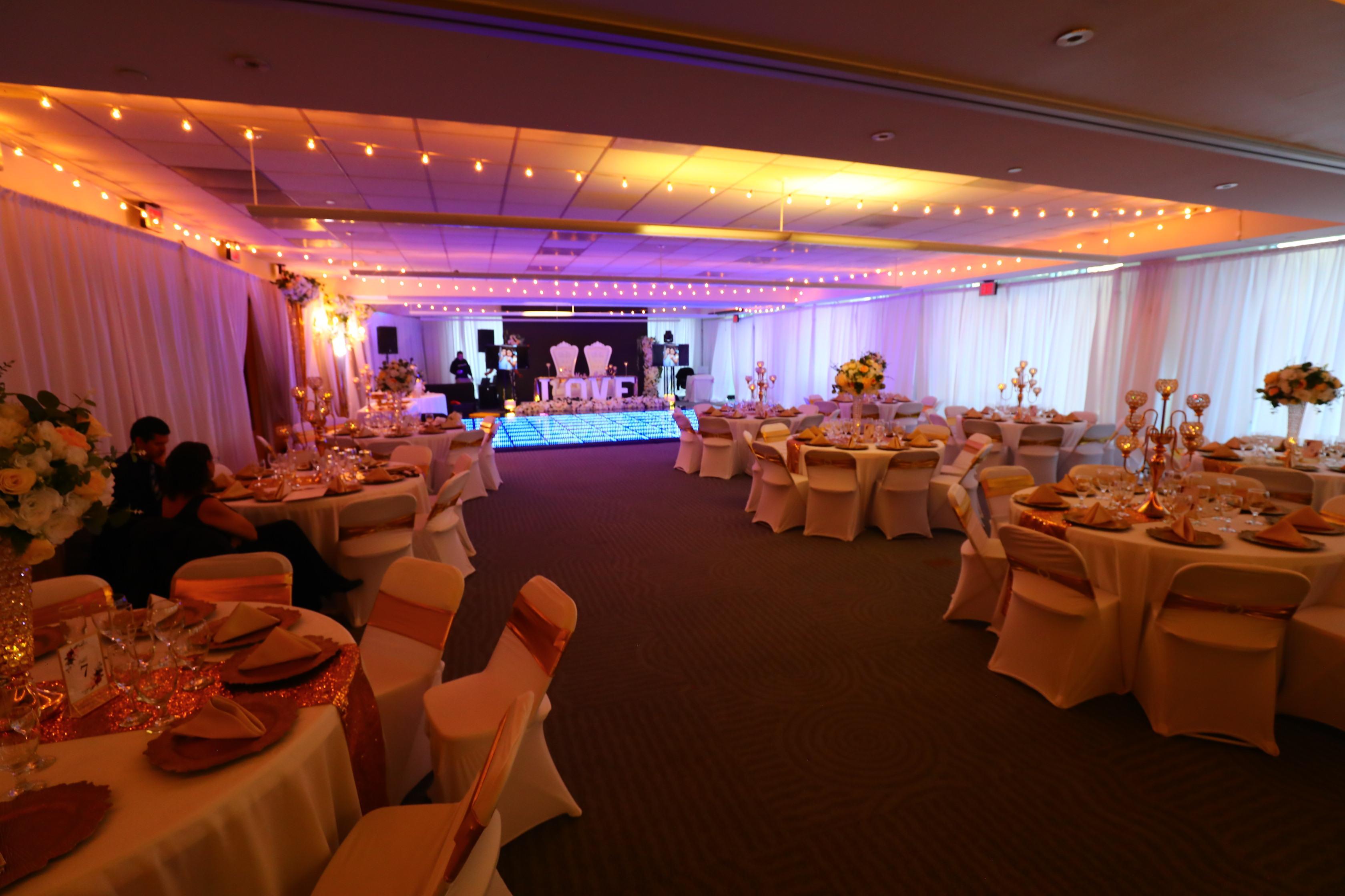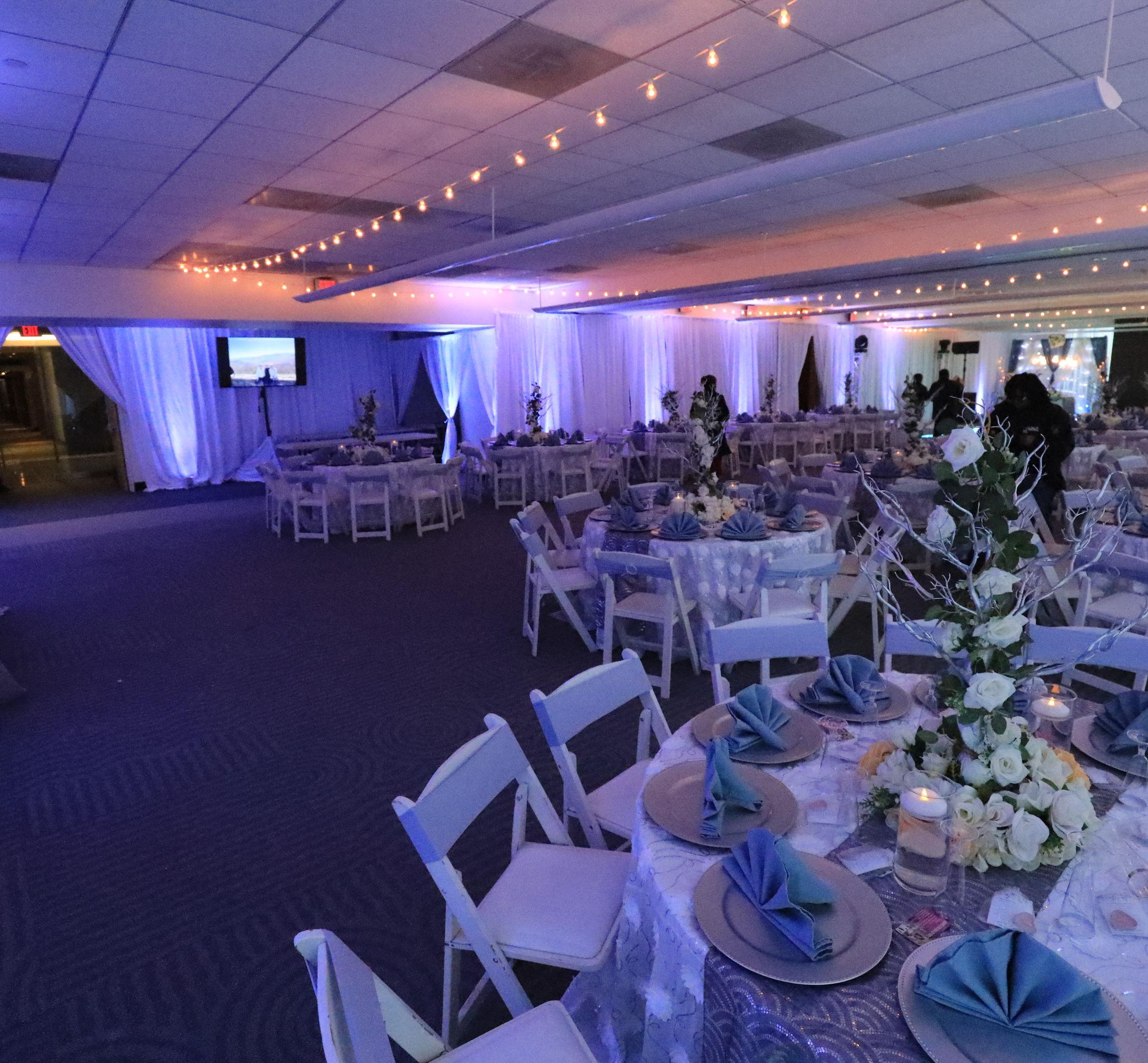 A beautiful, spacious venue with the option of white or black draped walls with carpeted floors and the option to divide the room with airwalls. We have plenty of parking spaces, large and clean bathrooms, extra storage or changing room, secured building. We also allow outside food and catering. 20 years of experience with large and small events ready to give our clients a unique, exceptional, and unforgettable experience.