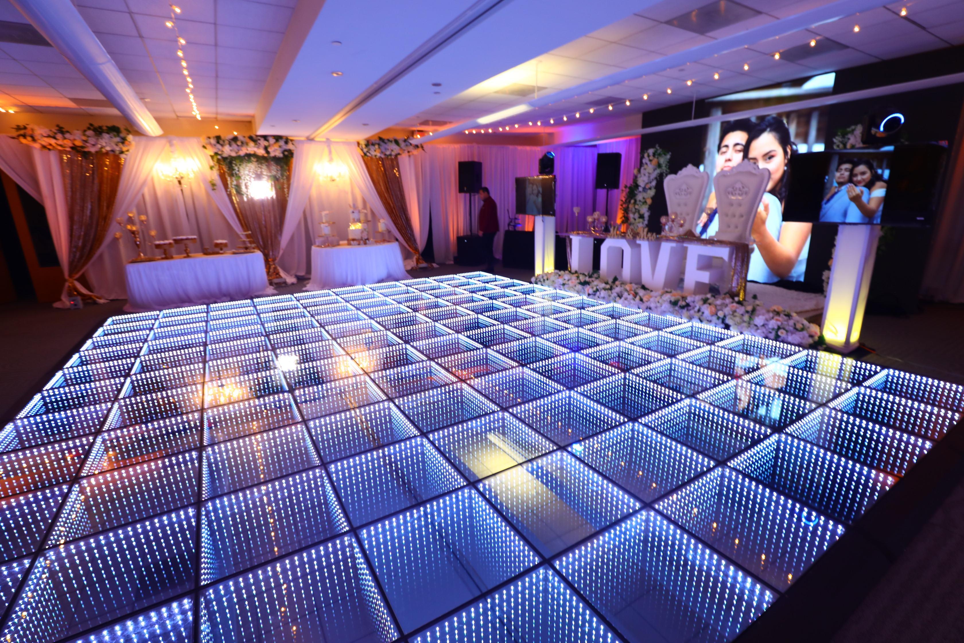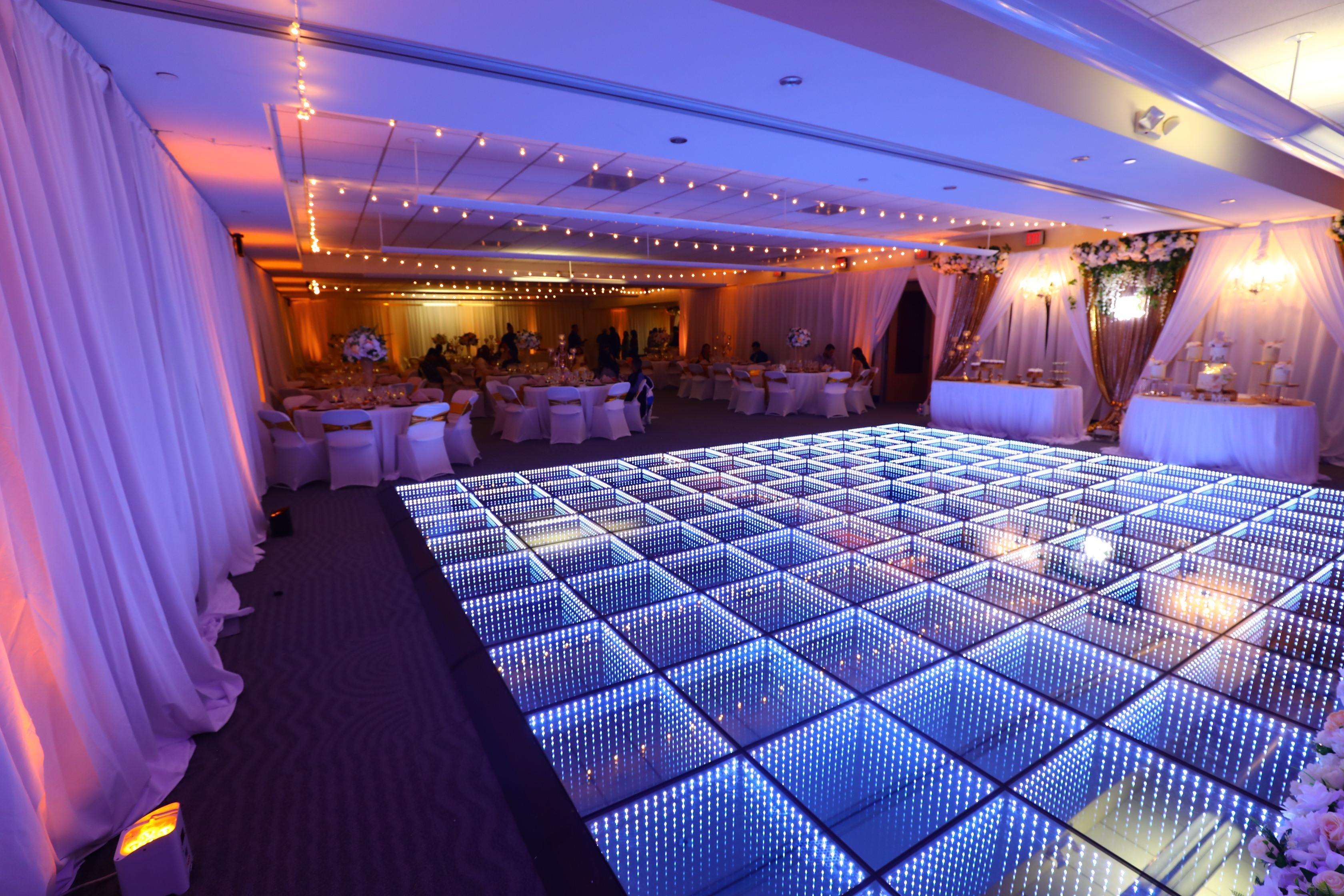 At The Ideal Venue, we provide the option of a minimal set up, or a maximum set up with the works. We have many different packages to choose from. Depending on your vision, we can provide you a Fully Draped room with Ambient Uplighting, our mind blowing 3D LED Dancefloor, the larger than life sized LED Video Wall to display any graphics, videos, or even live shots of your crowd. We can also incorporate our Cold Sparklers, the Cloud Effect, the Mirror Photobooth, the 360 Videobooth, DJ/Audio Service, Party Lighting Systems, Staging, Photography, Videography, Catering and Bartending. Large, clean restrooms, a kitchen area with refrigerators/freezers, and plenty of free parking. Whatever you can imagine, we can make it happen here with our professional team. We look forward to creating your next event masterpiece!