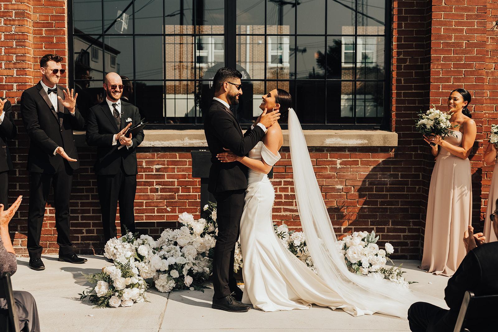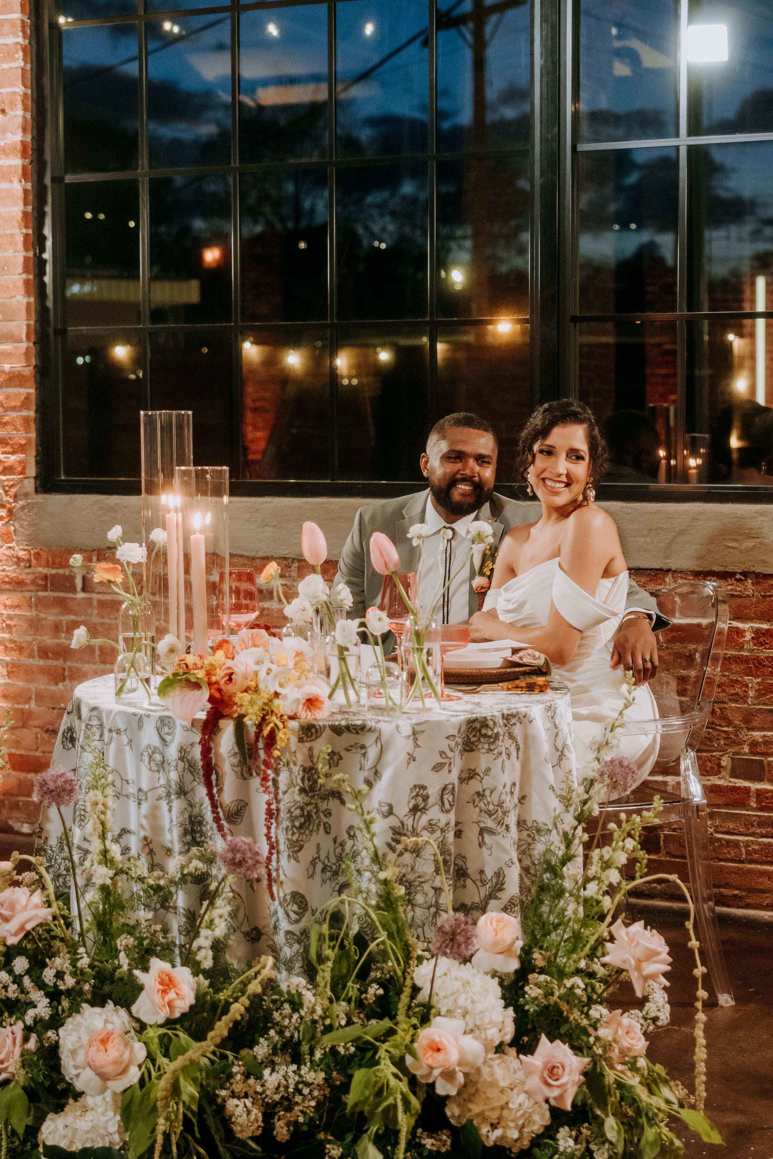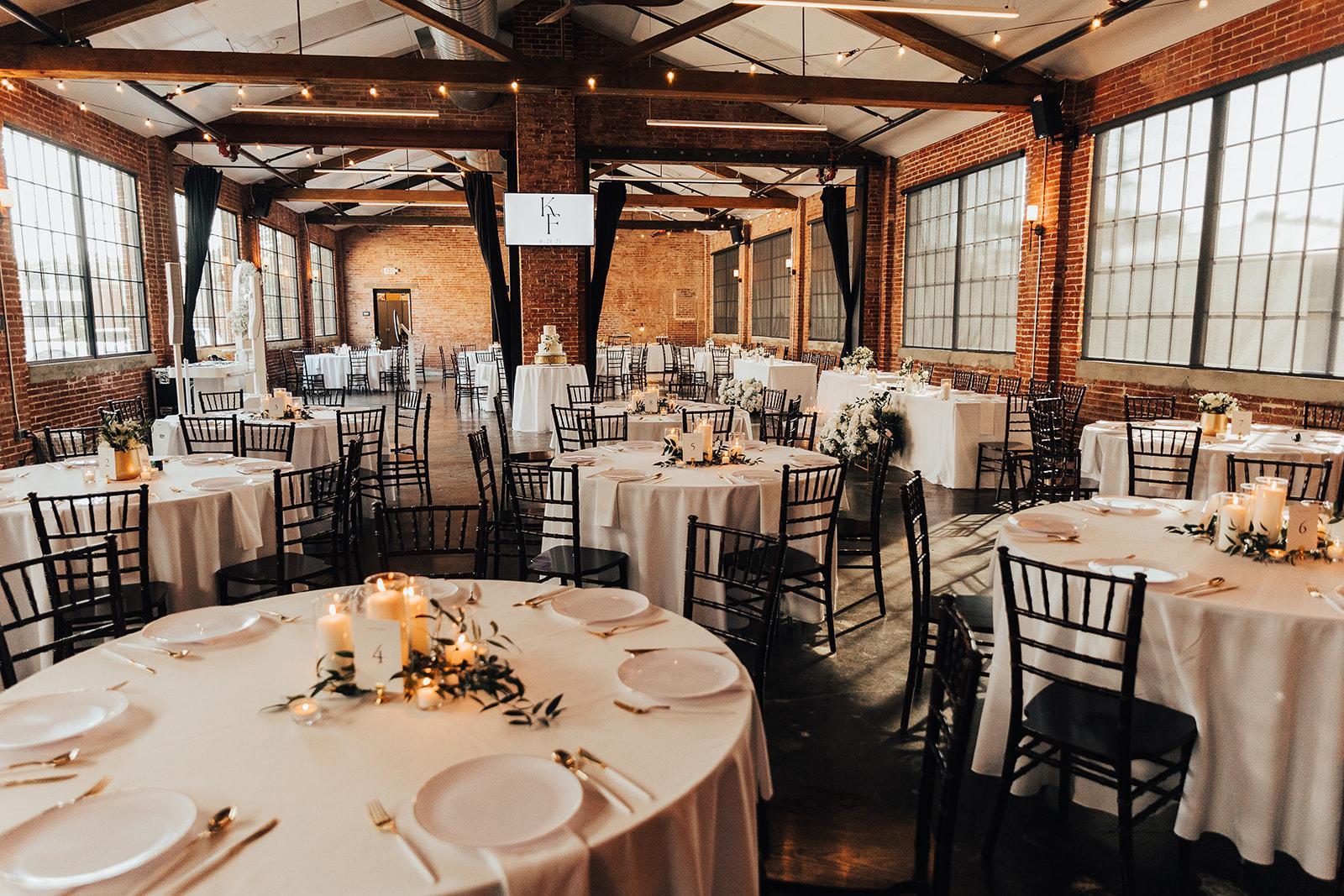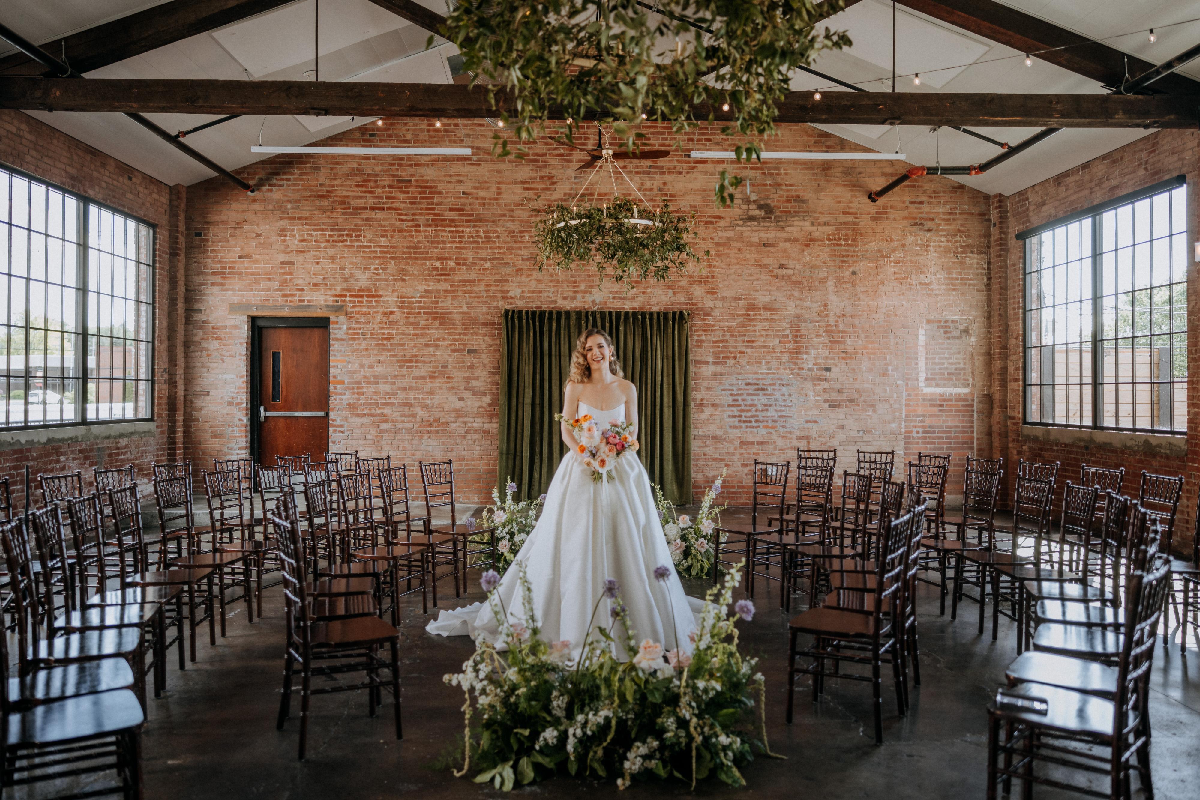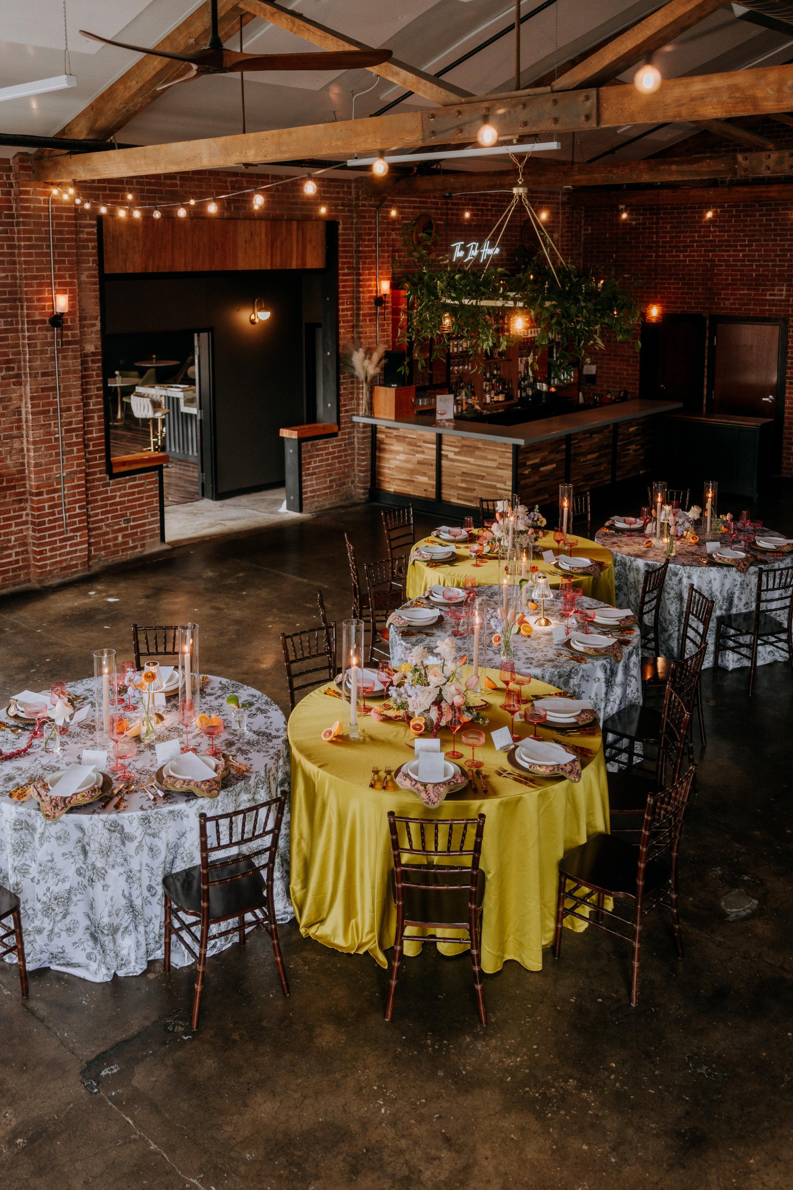 Off The Record offers versatile indoor and outdoor spaces with a moody color palette, crystal chandeliers, and a large bar inside. Step into the massive courtyard for an enchanting ceremony, cocktail hour, or open-air reception. Brick walls and gold sconces highlight the venue’s historic charm, blending modern elegance with rich heritage. Whether indoors or out, Off The Record creates a stunning, flexible backdrop for unforgettable celebrations.