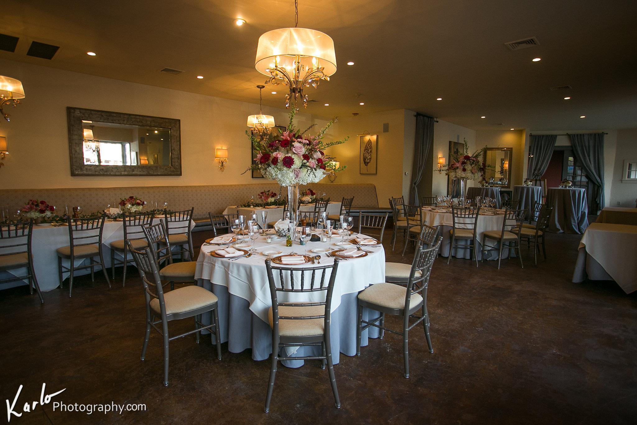 - Tables, linen and chiavari-style chairs - Dimmers for complete light customization - Dance space - Bar access - Private patio