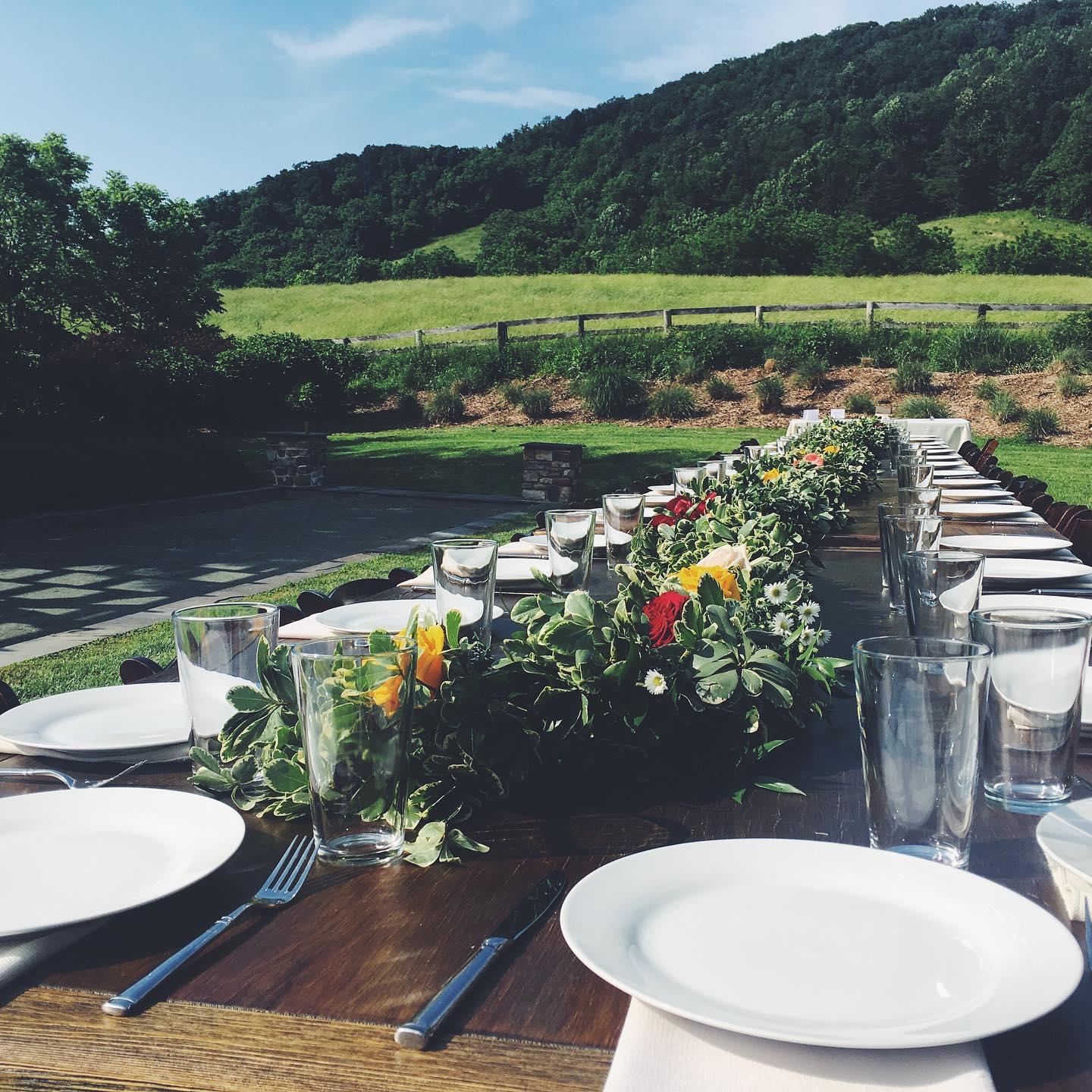 Having your wedding ceremony on the Inn grounds will provide you and your guests stunning views of the Blue Ridge Mountains. We offer several settings so your special day will be truly unique. Our Inn has accommodations for sixteen people with five luxury guest rooms in the main house and a cabin. Use of the Inn grounds for an outdoor ceremony and a rehearsal dinner. Access to the upper field two days prior and two days after your wedding (tents not included)