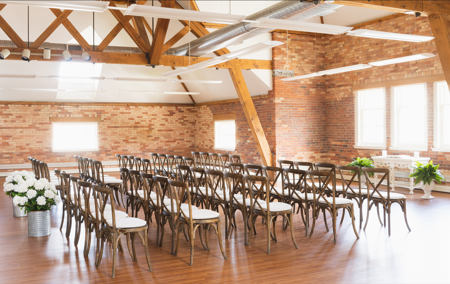 Glide down the aisle under hand-hewn beams in our light-filled loft, conveniently next door to the Aurora Inn. Spectacular lighting in this space sets the stage for your ceremony, engagement party, or rehearsal dinner. Packages starting at $150 per person.