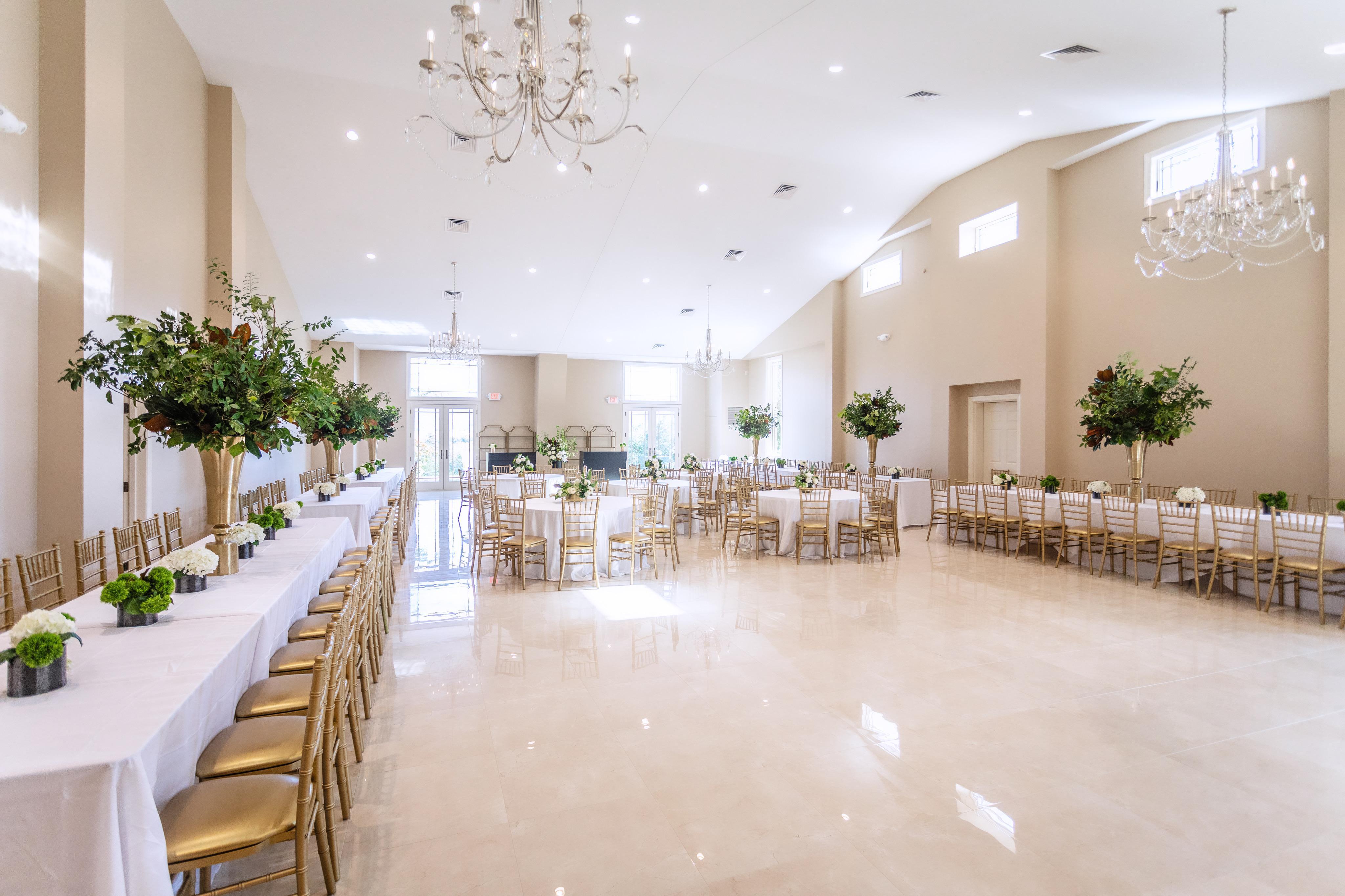 Celebrate with up to 200 guests for upscale dinners, receptions or ceremonies! Tables, Chiavari chairs, warming kitchen for on-site catering, as well as a variety of layouts based on your final guest count are included. All lighting is on dimmers and uplighting in any color is also available!