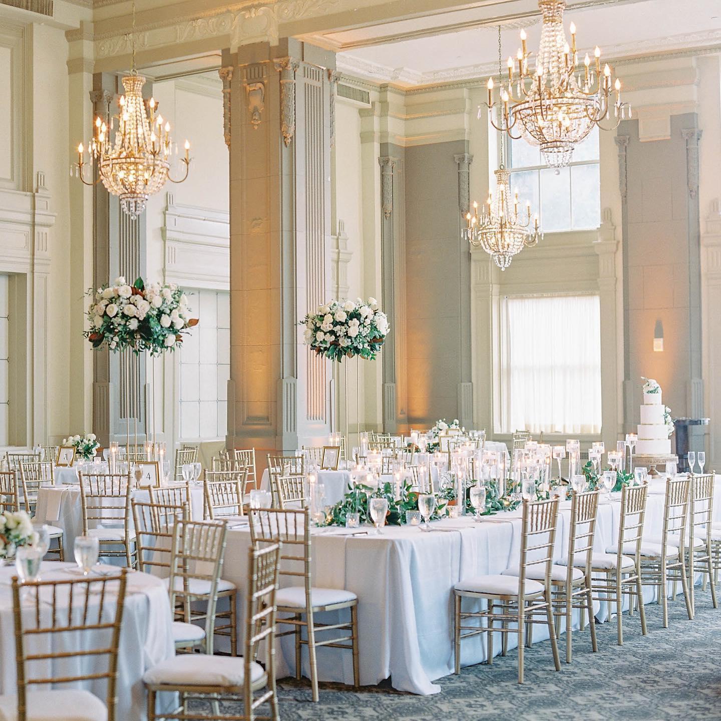 The John Marshall Ballrooms offers a stunning venue for your special day! The Lobby opens with a marble staircase and palladium window. To the left is the grand Marshall Ballroom, adorned with nine vintage crystal chandeliers, three walls of 30' windows, and lead-paned glass encased in elaborate handcrafted moldings. Behind the Marshall ballroom is the Virginia Ballroom, featuring a wrap around balcony that leads into the main floor from a split staircase for a magnificent grand entrance.