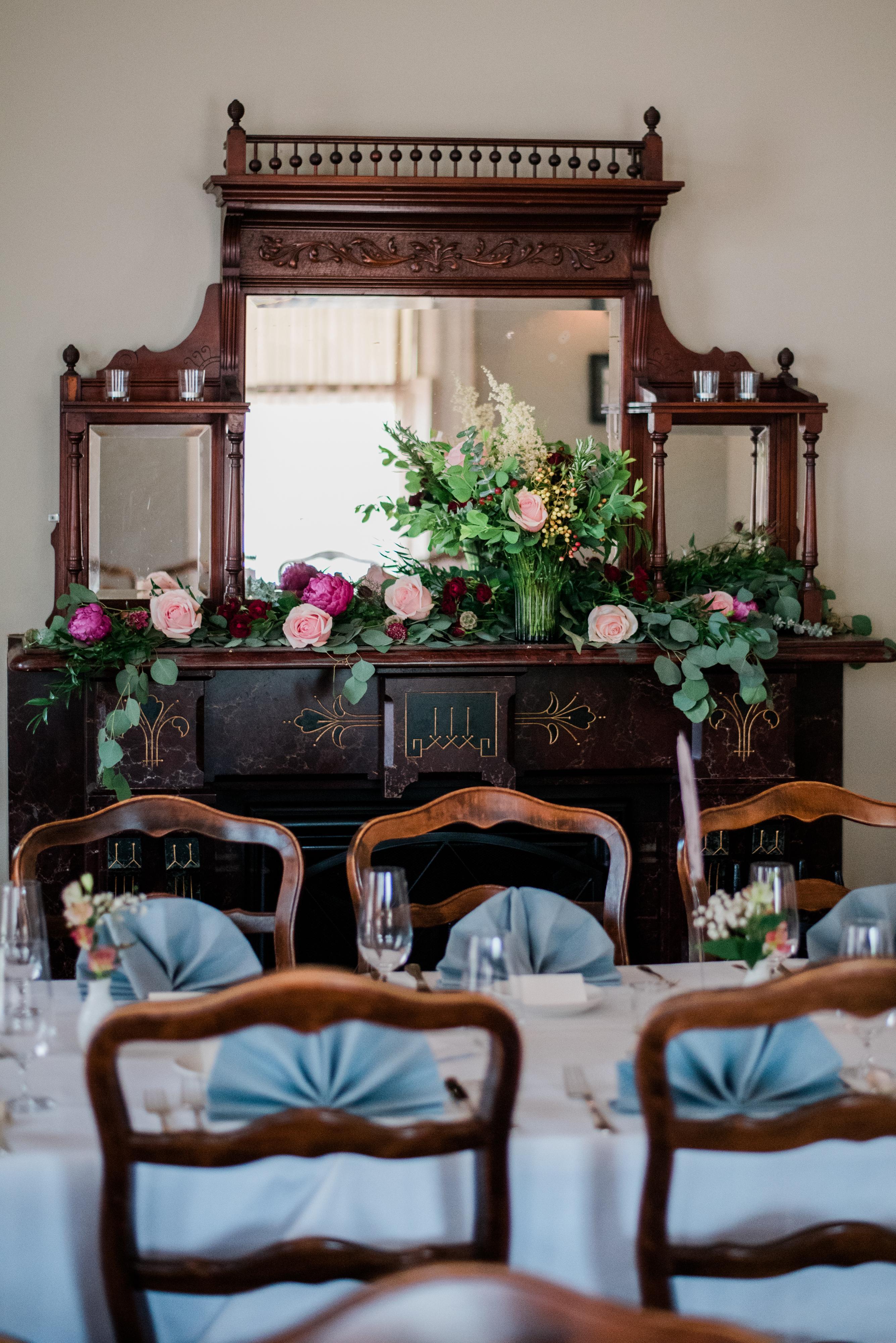 -Exclusive use of the entire space, including four dining rooms, a bar and lounge area, our front porch, and back patio. (*Inn rooms upstairs will be rented to the public unless the rooms are purchased by the wedding party.) -Tables, chairs, and linens. -Three original soapstone fireplace mantles, and one fully operative indoor fireplace. -Large windows, including two bay windows. -Candles & votives for each table. -Highly trained waitstaff.