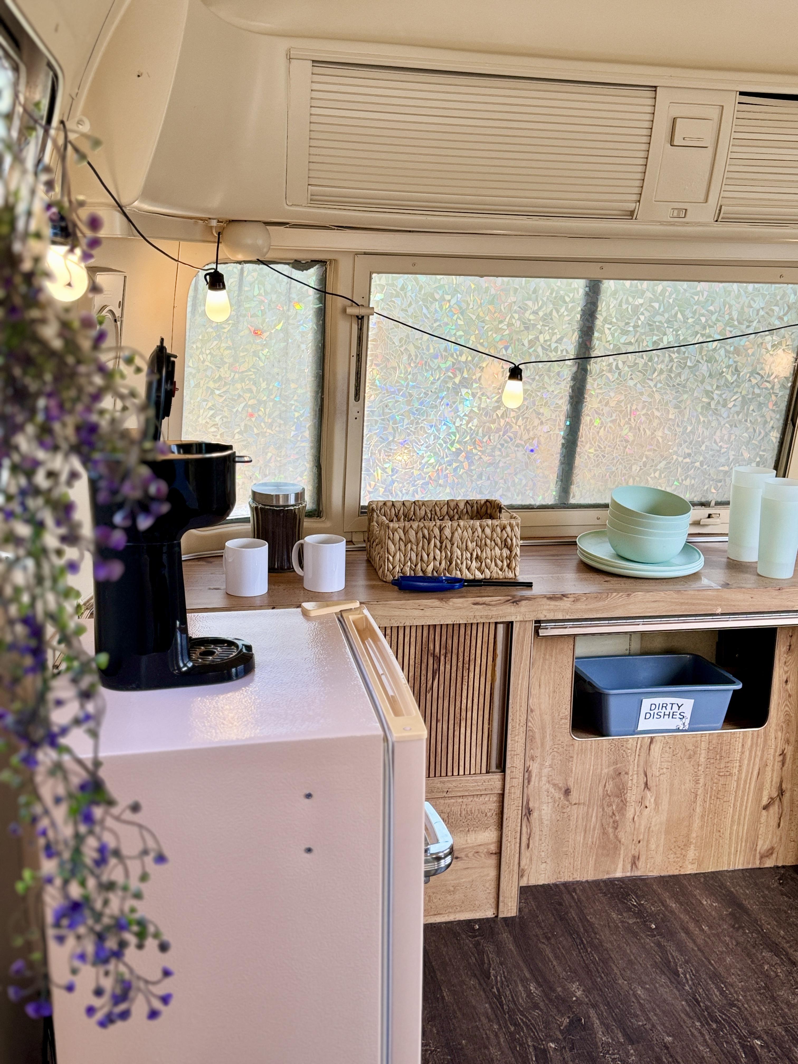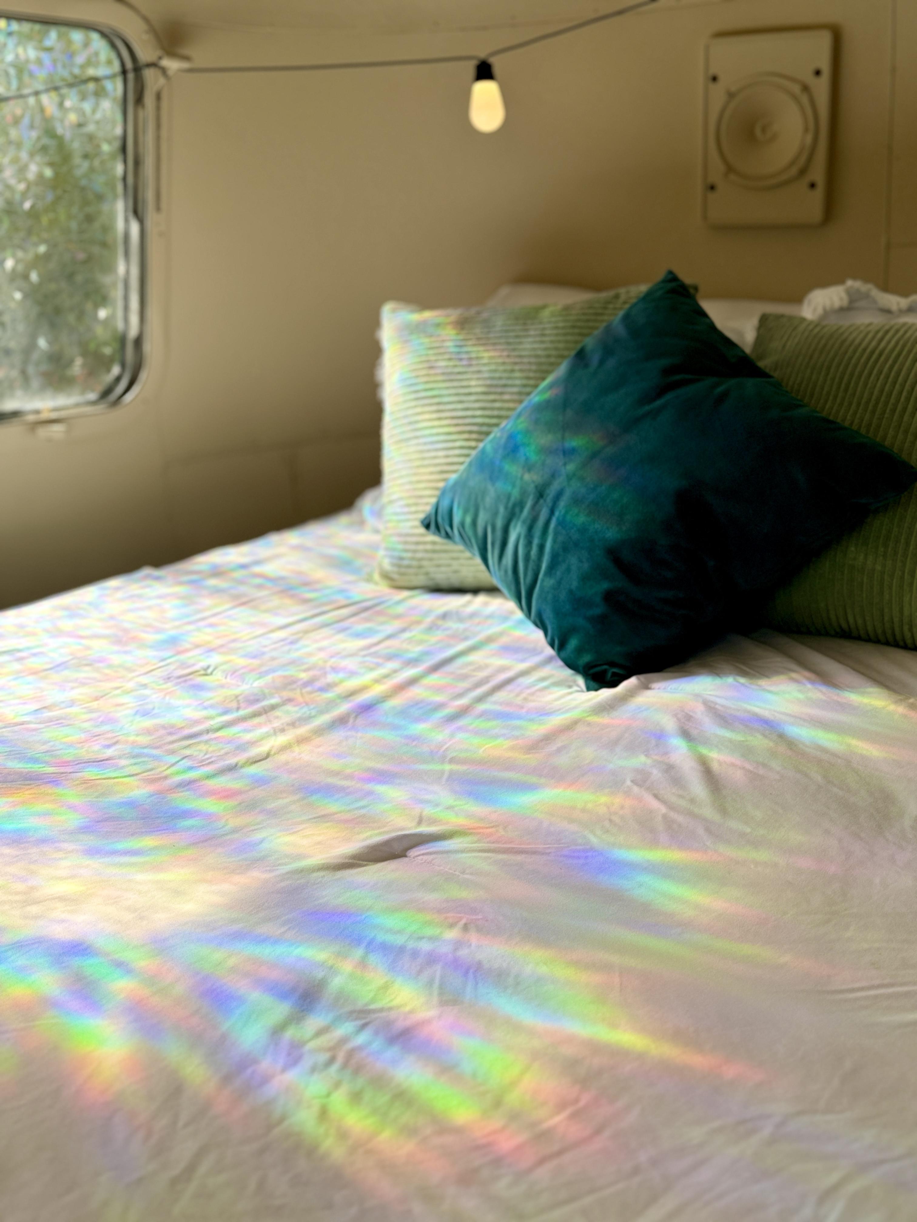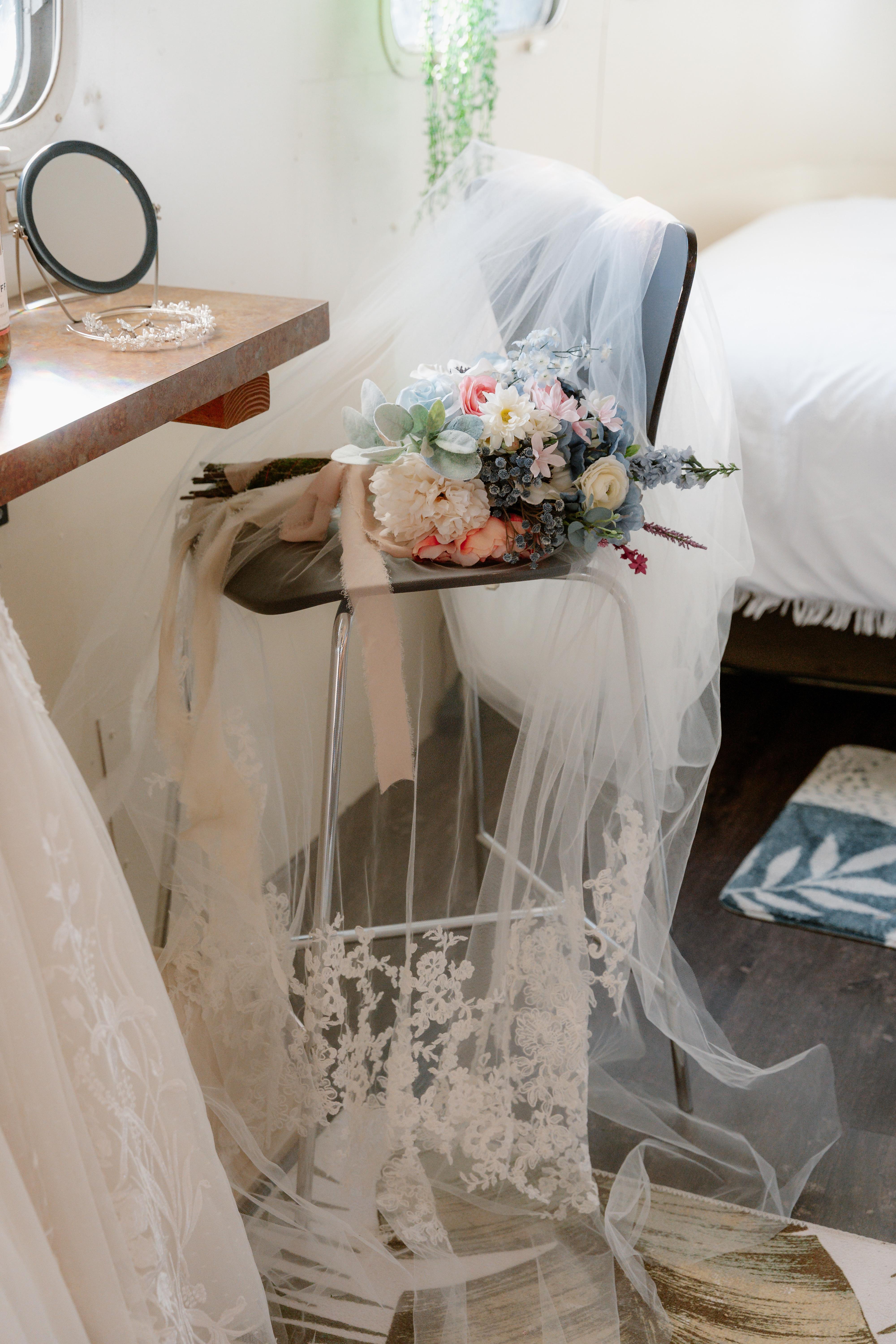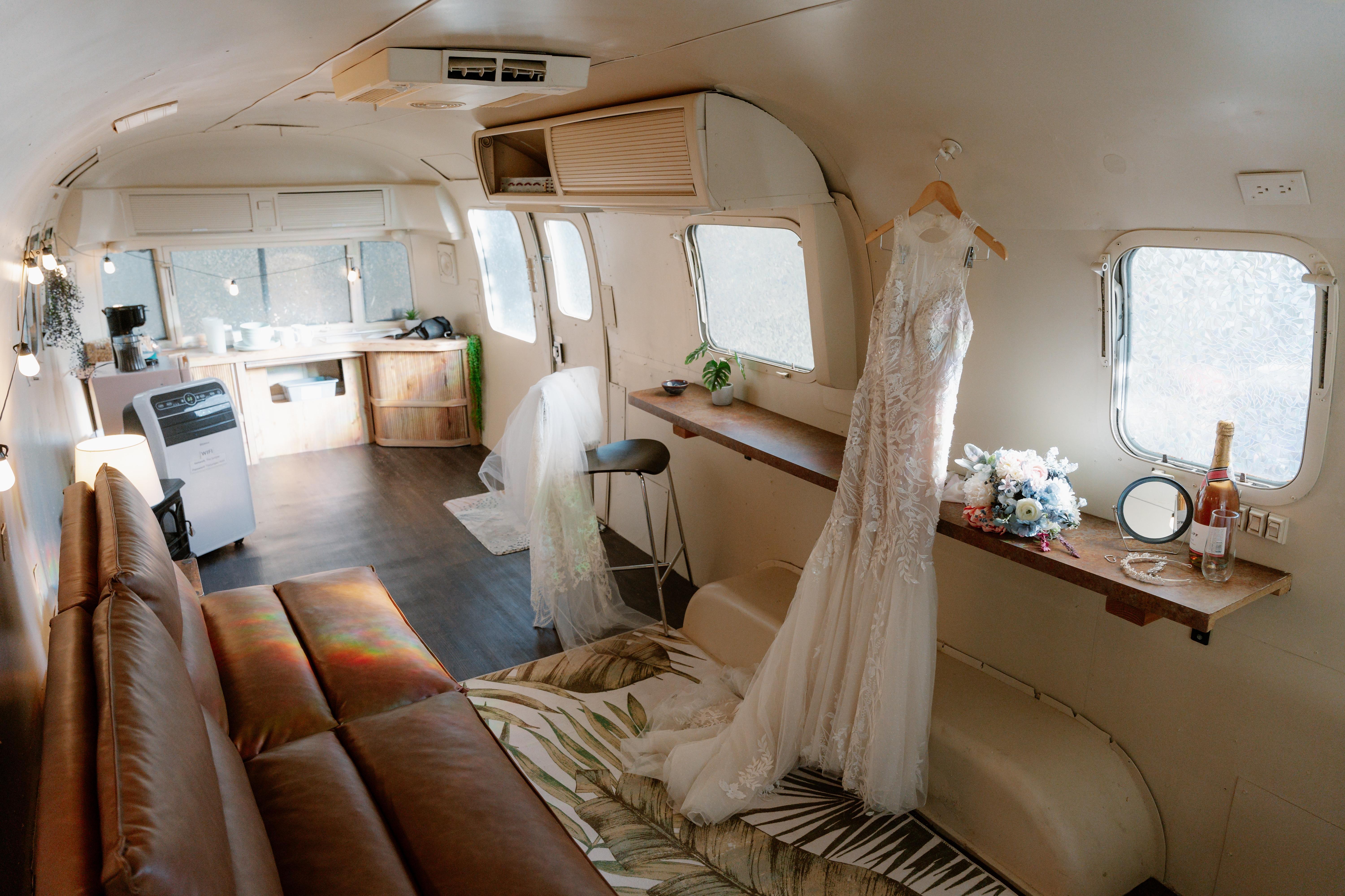 Our beautifully restored 1970s Airstream serves as our bridal suite for the bride and her crew to get ready the day-of. The space also doubles as an overnight accommodation for up to four people.