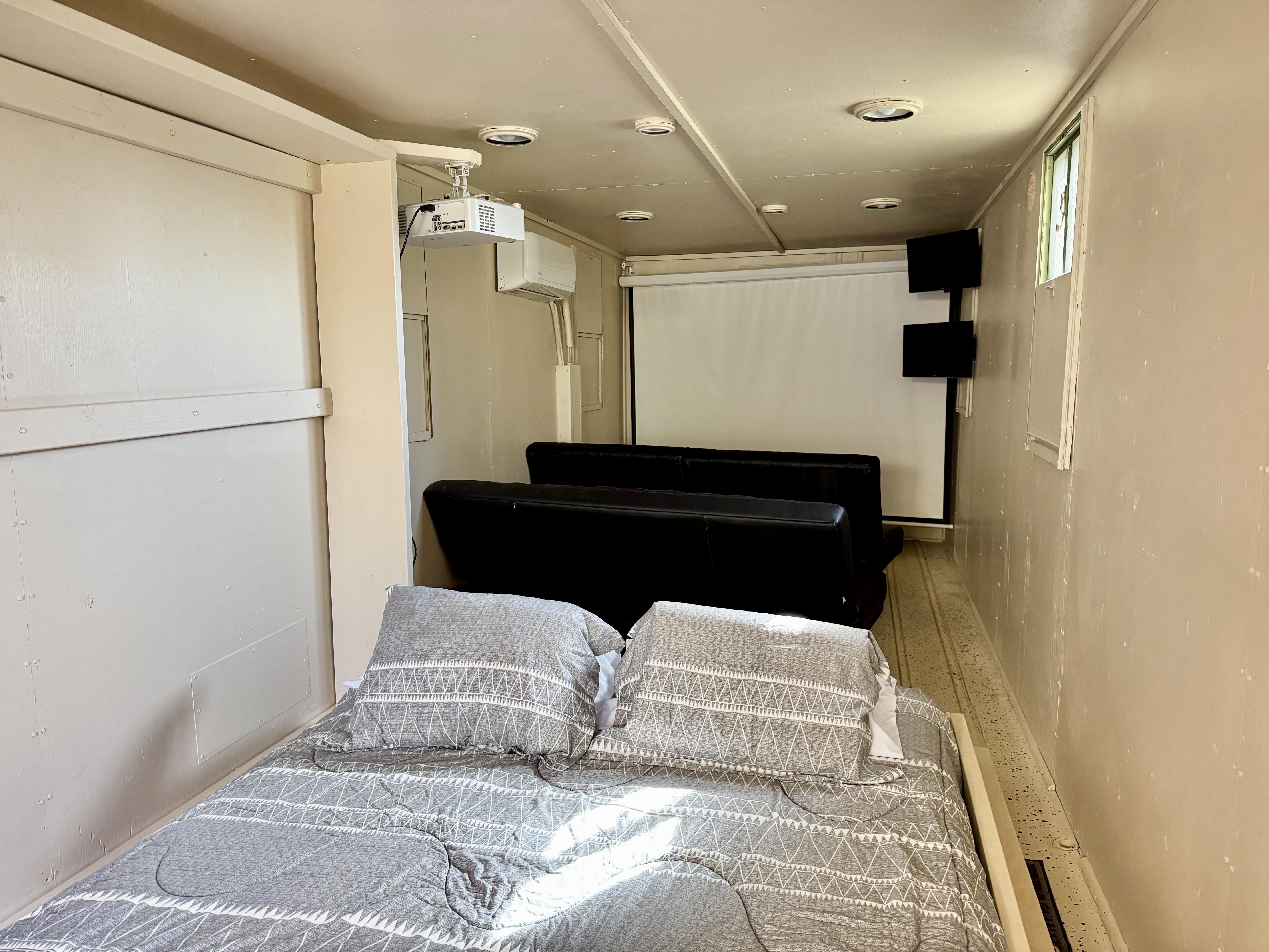 Our retired 1964 Army Tank Command Center is the ultimate Man Cave for the groom and his guys to get ready on wedding day. The space is decked out in screens for streaming or gaming. The ATC doubles as an overnight accommodation for up to six guests.