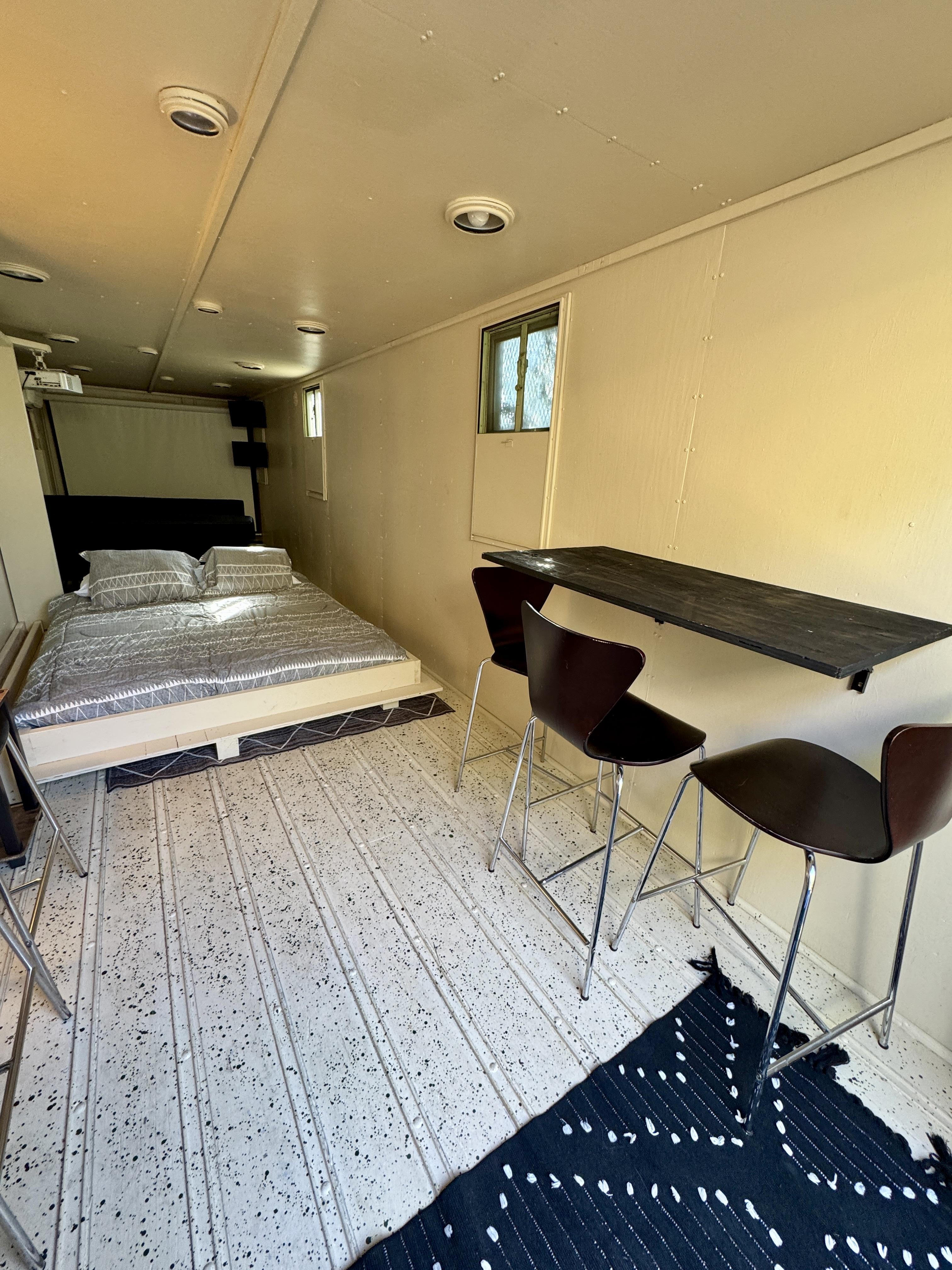 - Outdoor hot tub and hammock - Indoor outlets - Full-length mirror - Heat and A/C - Queen-size bed - Futon that folds into bed