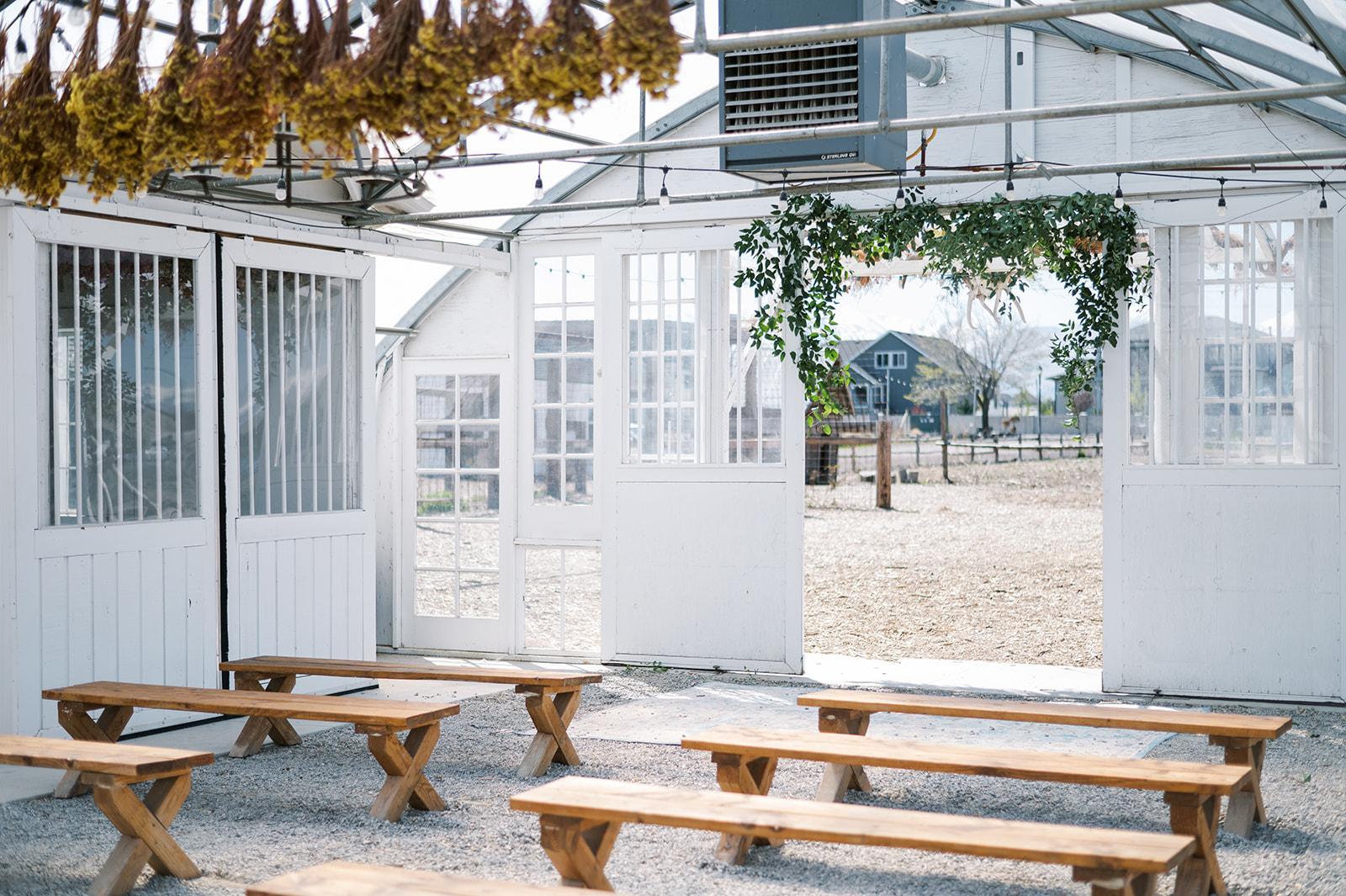 A complimentary tour of the space before booking to answer any of your questions. The Garden House includes 7 large tables with benches, additional tables/chairs can be rented to seat up to 100. Climate control in the Garden House. The space is heated during the cooler months but is a greenhouse and does not reach above 70 degrees. During the warmer months, A/C, misters and fans are provided.