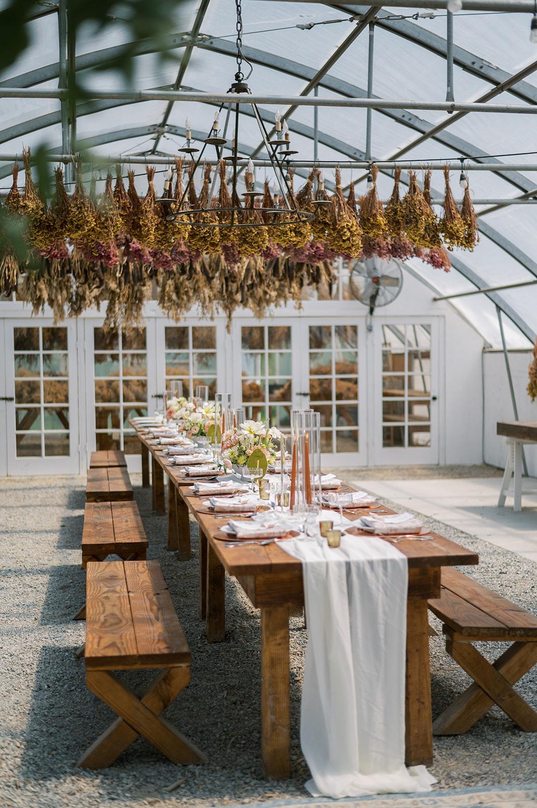 The essence of the Garden House lies in its adaptability, offering a wholly self-guided experience that allows you to imprint your unique touch on every event. Equipped thoughtfully with tables, chairs, water, and electricity, it ensures each occasion unfurls seamlessly. Designed to comfortably accommodate groups of up to 100 in a sit down situation, or up to 150 if you are working in an open house style event, this botanical sanctuary is a sought after rental space. We know your wedding day already feels overwhelming, and we don't want to add to that by ushering you in and out on a tight schedule. Our unique model only allows for one event in our Garden House per day, ensuring that you aren't rushed, and have all the time you need for your photos, your ceremony, your special people, and hopefully, the time of your life. We also offer a range of curated additions including dish ware, rugs, extra tables and chairs, a decor closet and more to ensure that everything flows seamlessly.