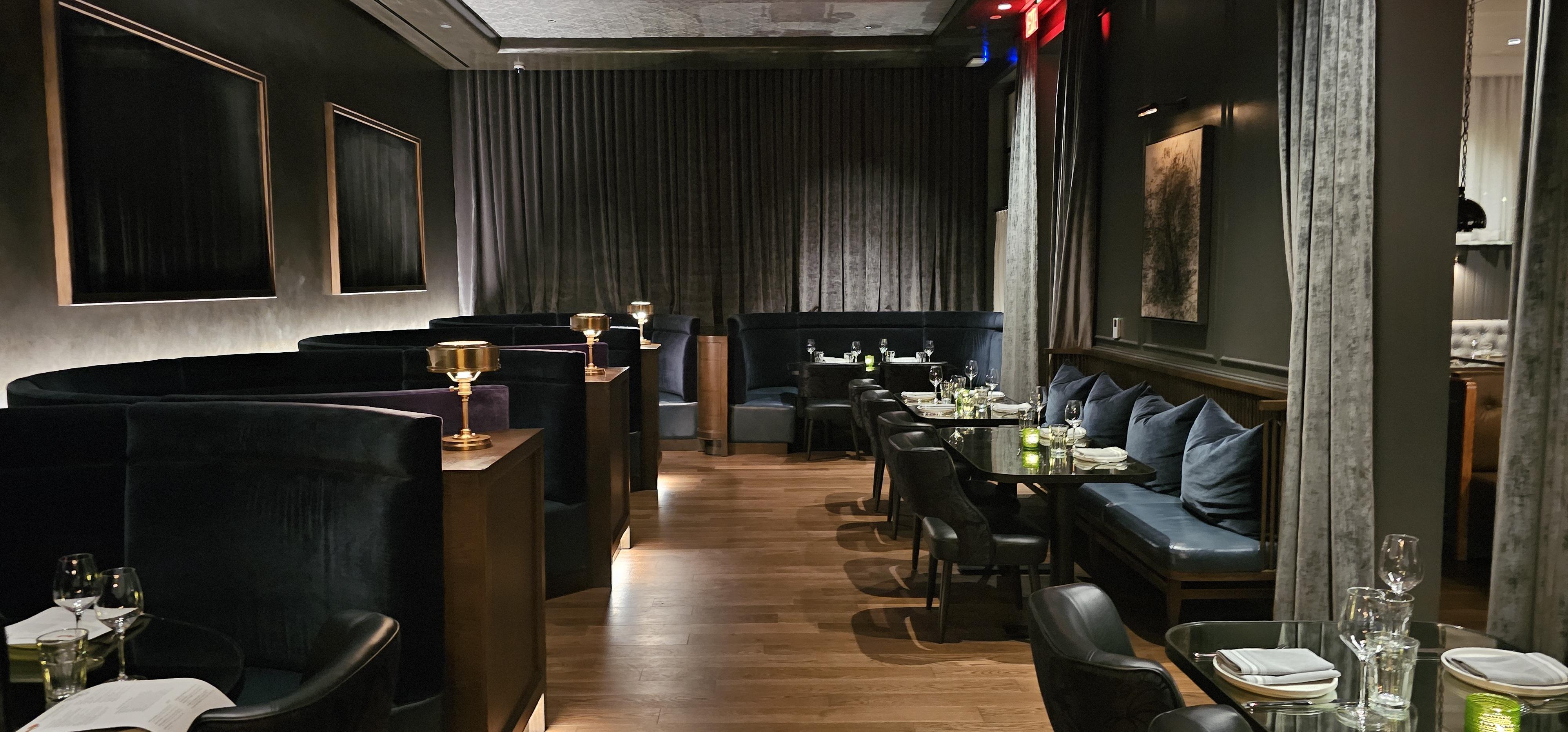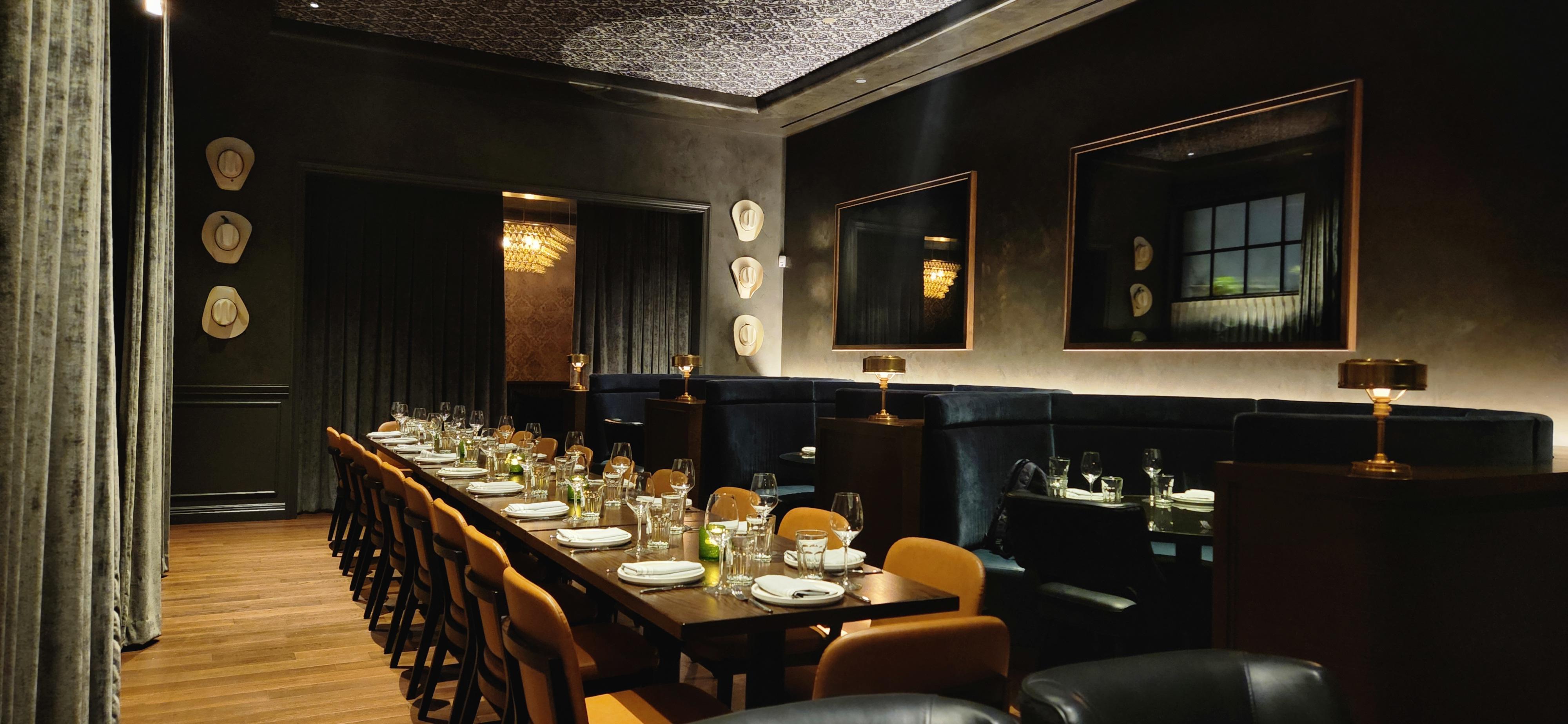 Step into timeless elegance in The Velvet Room, our private dining space designed for unforgettable gatherings. Rich textures, moody lighting, and plush velvet accents create a warm, sophisticated atmosphere perfect for any occasion. Whether you're hosting an intimate seated dinner for up to 42 guests, a lively cocktail reception for up to 50 or even a speakeasy afterparty, The Velvet Room offers a versatile and stylish backdrop for celebrating, connecting, and indulging in exceptional cuisine.