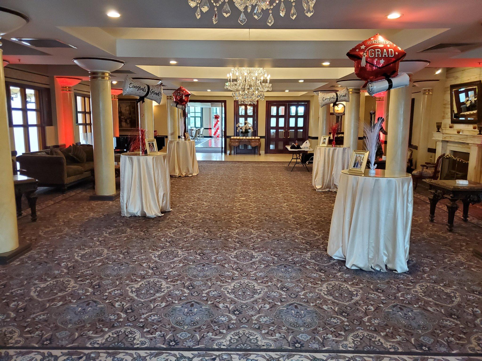 The facility offers an open-air outdoor terrace, providing a stunning and picturesque backdrop, where your guests can take in the cool breeze and enjoy an expertly crafted cocktail. This covered outdoor space is perfect for photos and capturing memories that will last a lifetime. Our brand-new 360-degree bar allows guests to easily grab a drink, and our fireplace is the perfect setting during a cool evening or the fall and winter months.