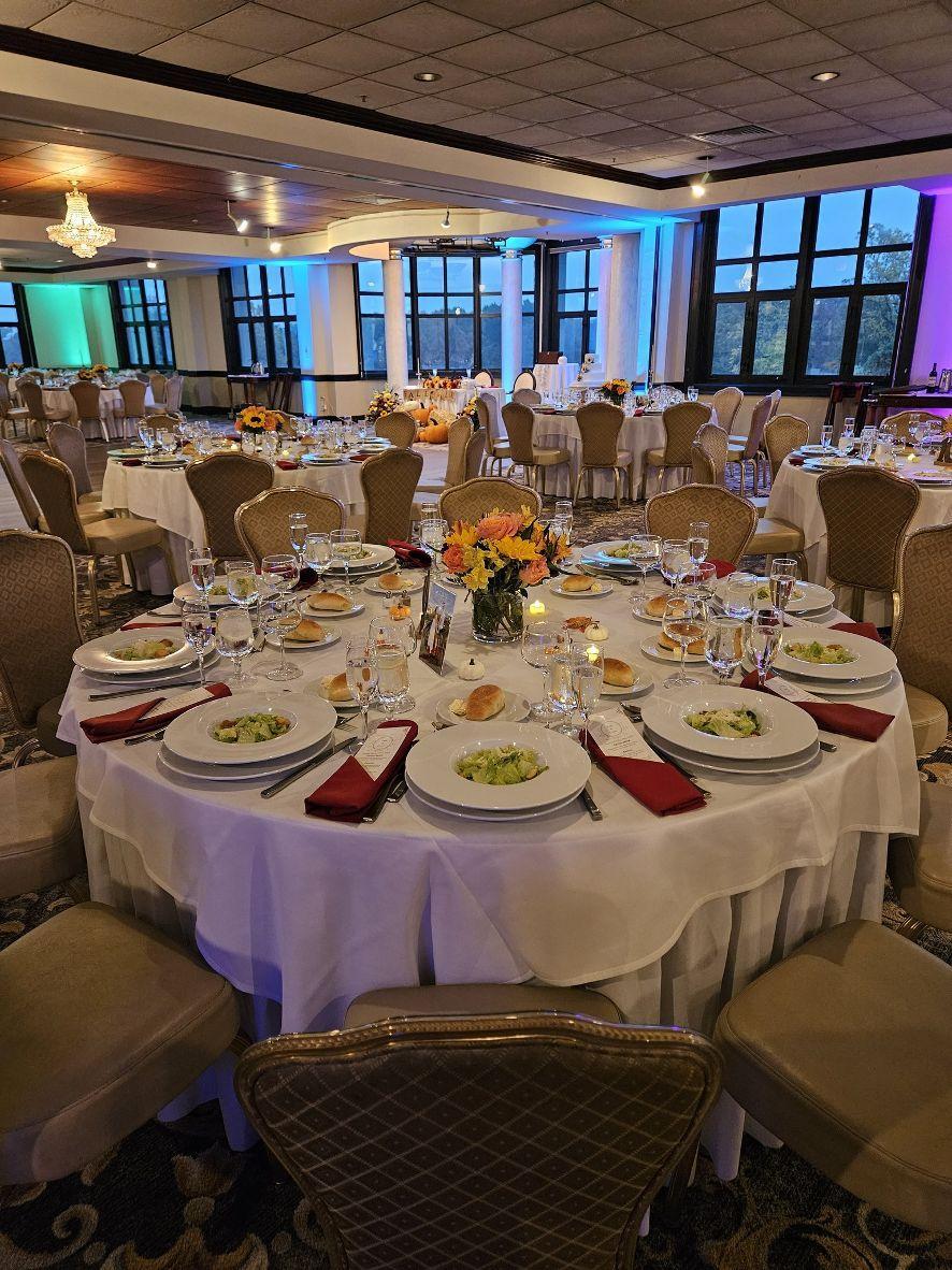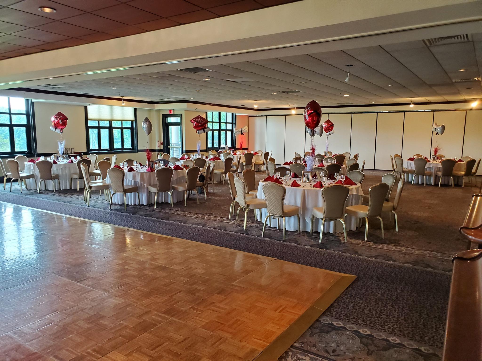At The Knoll West Clubhouse, we can accommodate any event of up to 500 guests. Our classic and elegant design, complemented by soft-colored décor and panoramic views framed by windows, offers the perfect backdrop for a wedding or corporate event.