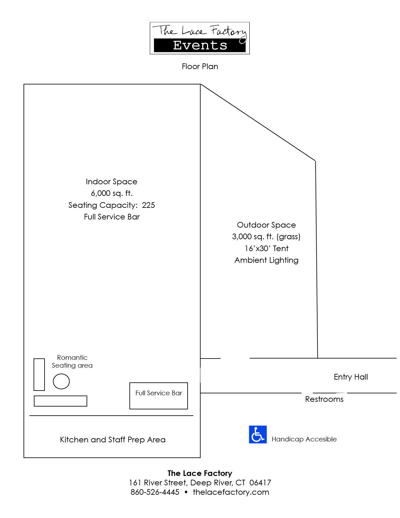 The Lace Factory in Deep River, CT is a historic industrial venue across from the CT River. With exposed brick, high ceilings, and vintage charm, it hosts up to 300 guests. The space includes indoor and outdoor ceremony options, a bridal suite, and full-service catering—ideal for a unforgettable wedding.