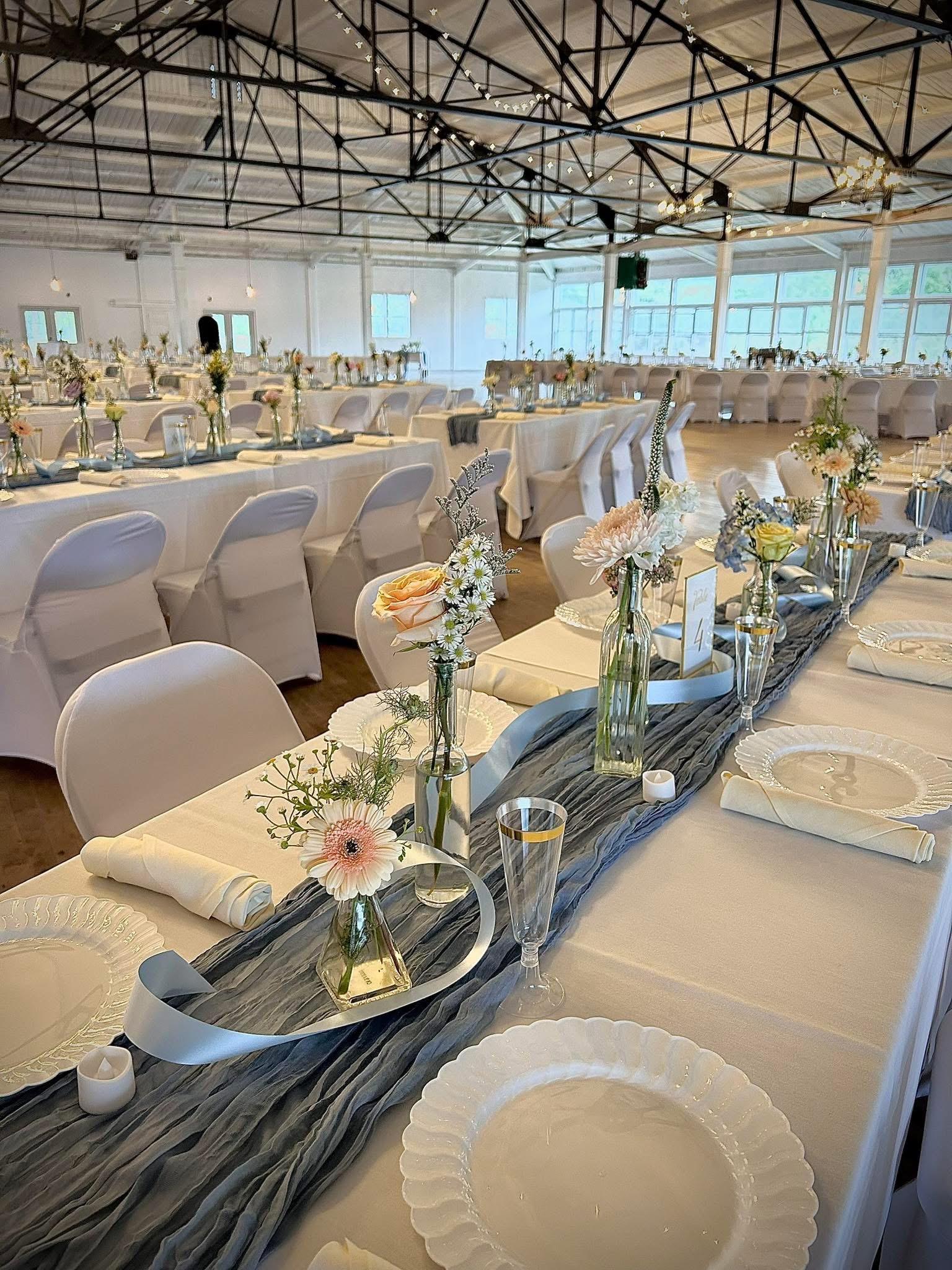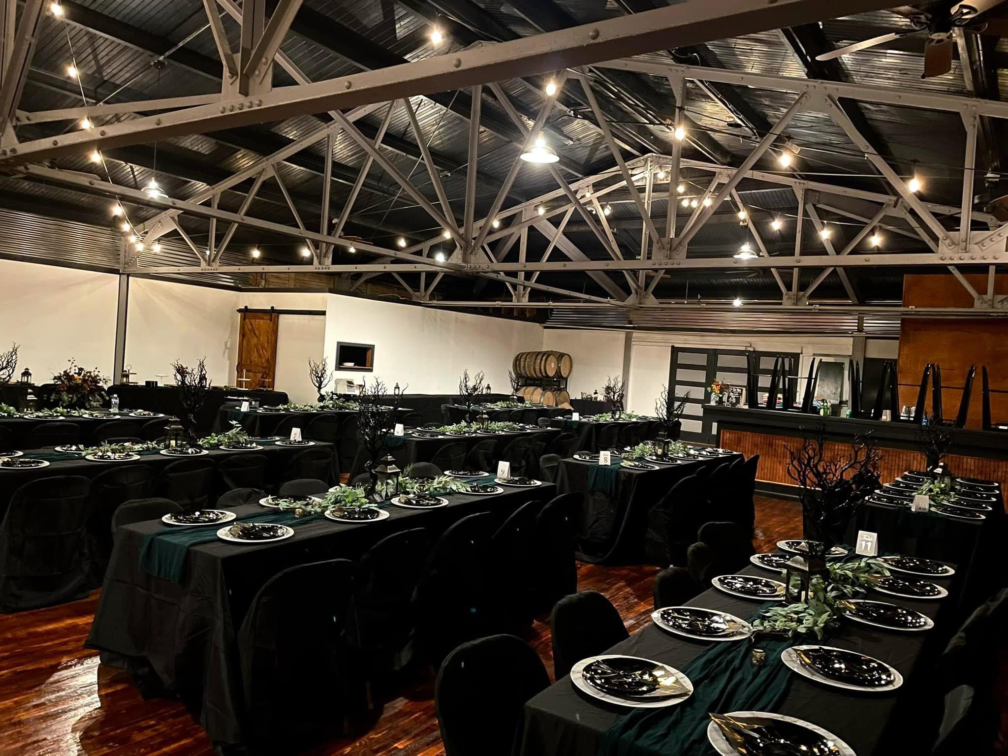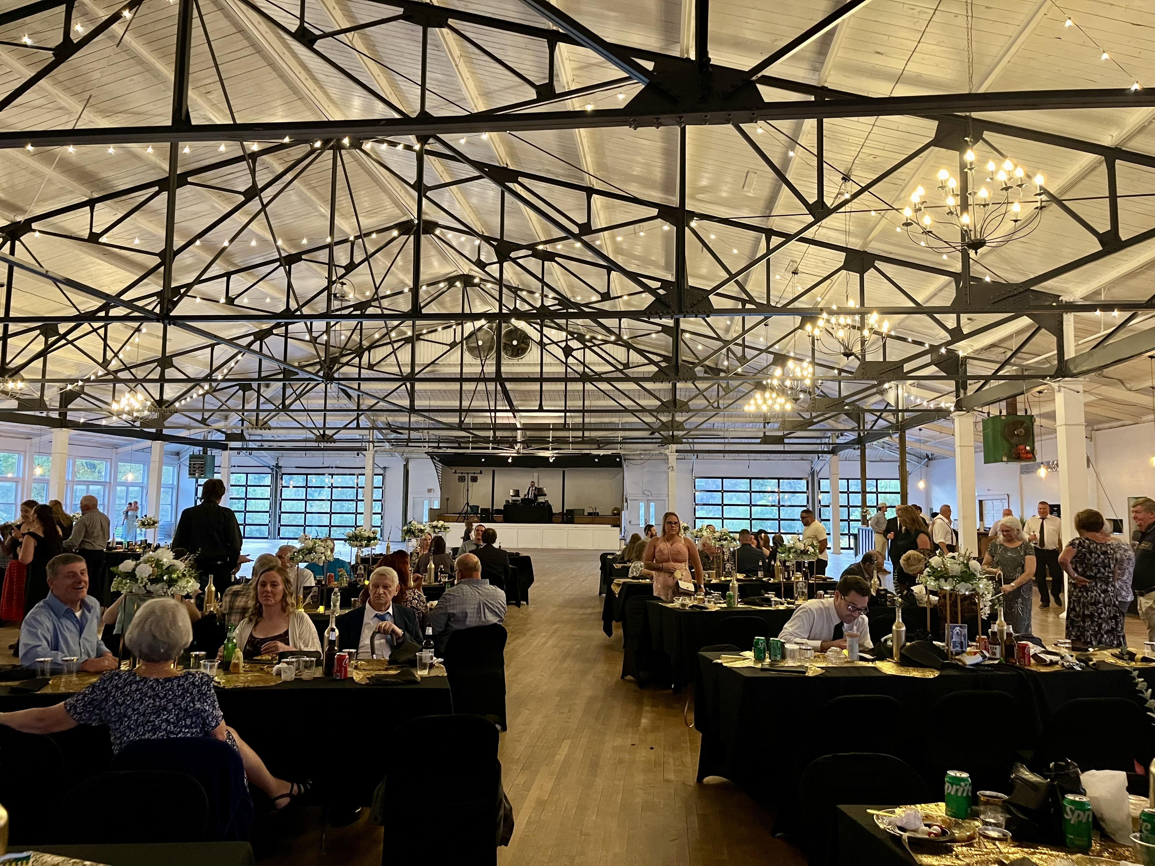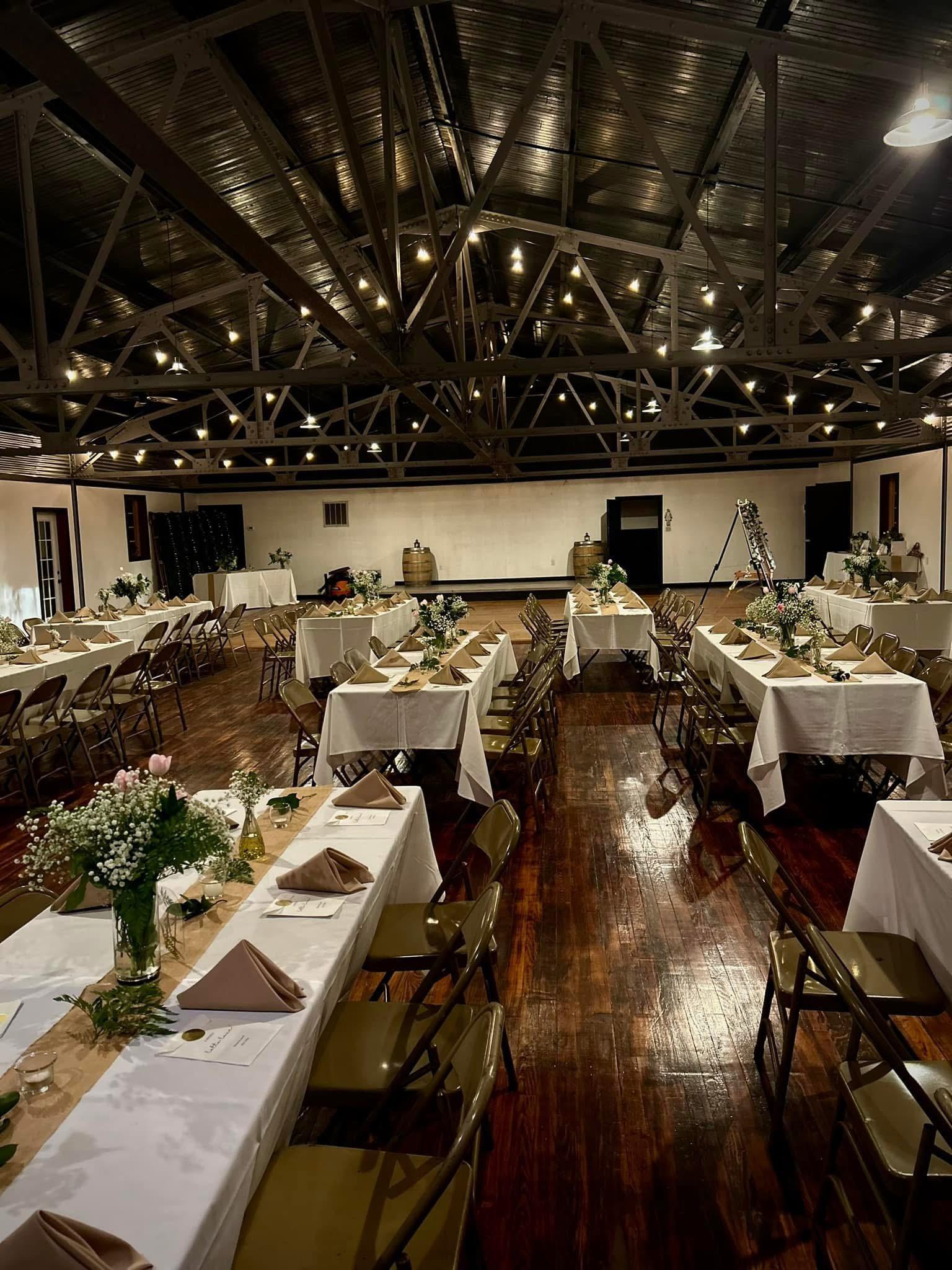 Host your celebration in our beautifully renovated 6,000 square foot ballroom, featuring soaring ceilings, exposed steel beams, warm hardwood floors, and ambient string lighting. With seating capacity for up to 140 guests, the space is perfect for weddings, banquets, and special events of all kinds. The open floor plan allows for flexible layouts, while the industrial-chic design provides a stunning backdrop for both elegant and modern themes.