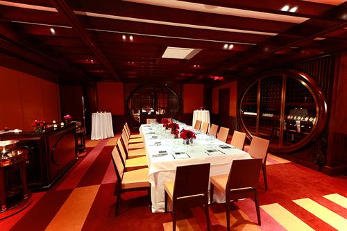 This private event space, adorned with distinctive Landmarked elliptical doors and ultra-luxe finishings, may be split in half and converted into two smaller event rooms. In addition, a gracious foyer can be utilized for receiving guests or offering break service. The space comes with a dedicated bar, private restrooms, coat check, A/V capabilities and an independent sound system and can accommodate up to 125 for a reception, up to 120 seated, and up to 150 theatre style.