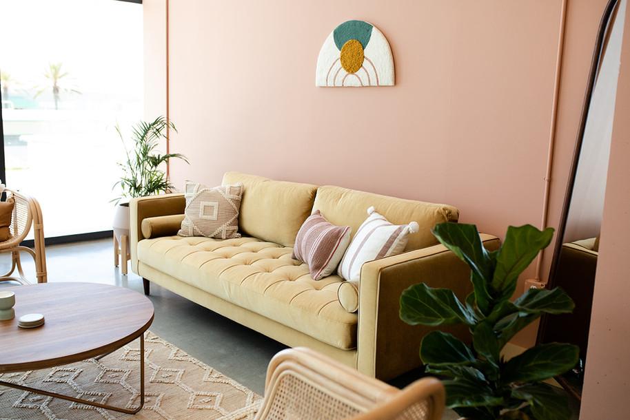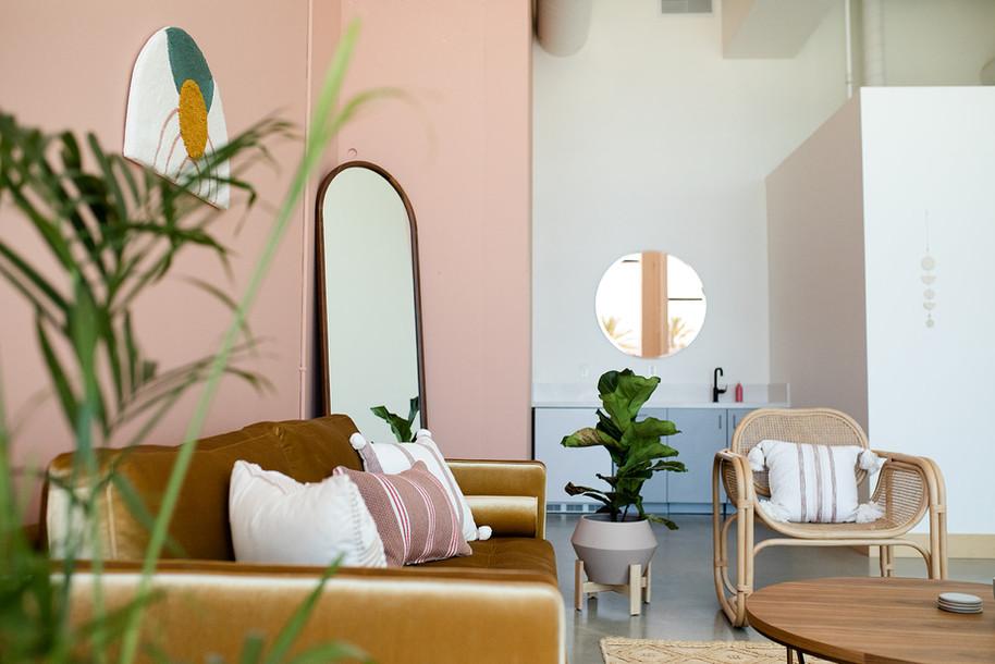 The private furnished suite comes complete with a restroom and wet bar as well as lounge furniture for you + your bridesmaids to hang out and a dining set ideal for a break out session during your conference. This curated oasis is ideal as a bridal suite, VIP lounge, meeting space, or greenroom.
