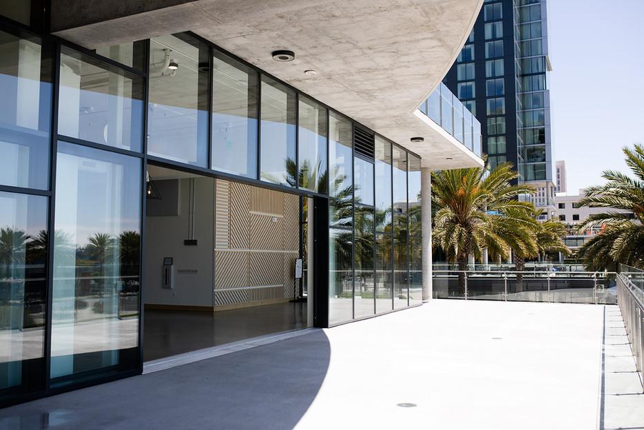 Elevated on the second floor, you have views of Lane Field Park, the Midway, Broadway Pier, Star of India and cruise ships coming in and out of the bay. The terrace is partially covered with availability to set up cocktail tables, lounges, and on-site catering on the north end. Perfectly compatible for the indoor-outdoor feel that is quintessentially San Diego, both sliding glass doors open up to this terrace. Guests can enjoy a signature drink during sunset cocktail hour or dance the night away at your corporate holiday party!