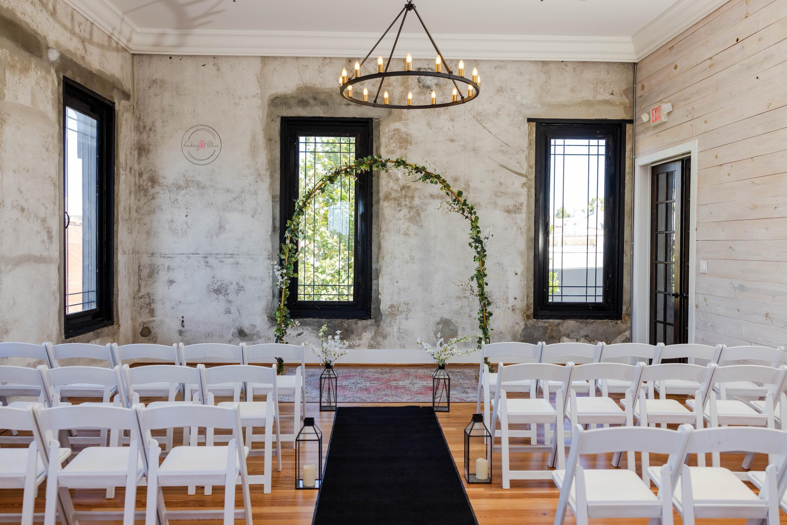 Tired of the same wedding barn look? This 1883 historic Laundry building is the epitome of a unique venue. It has several spaces to choose from- from an intimate 50 person ballroom (great for ceremonies) to a larger 150 person main reception area. The outdoor terrace has beautiful party lights and allows the party to spill outside. There is also a 2 bedroom apartment that can be included to use as a bridal suite or to house the couple. The flexible space is set up with A/V and projector and comes with square tables that can be arranges in multiple ways. We are an open vendor venue and you can provide your own alcohol (with TABC bartending) saving you money. Or leave the planning to us and check out our affordable all-inclusive options. Stand out from the rest and hold your celebration in a venue steeped in history.