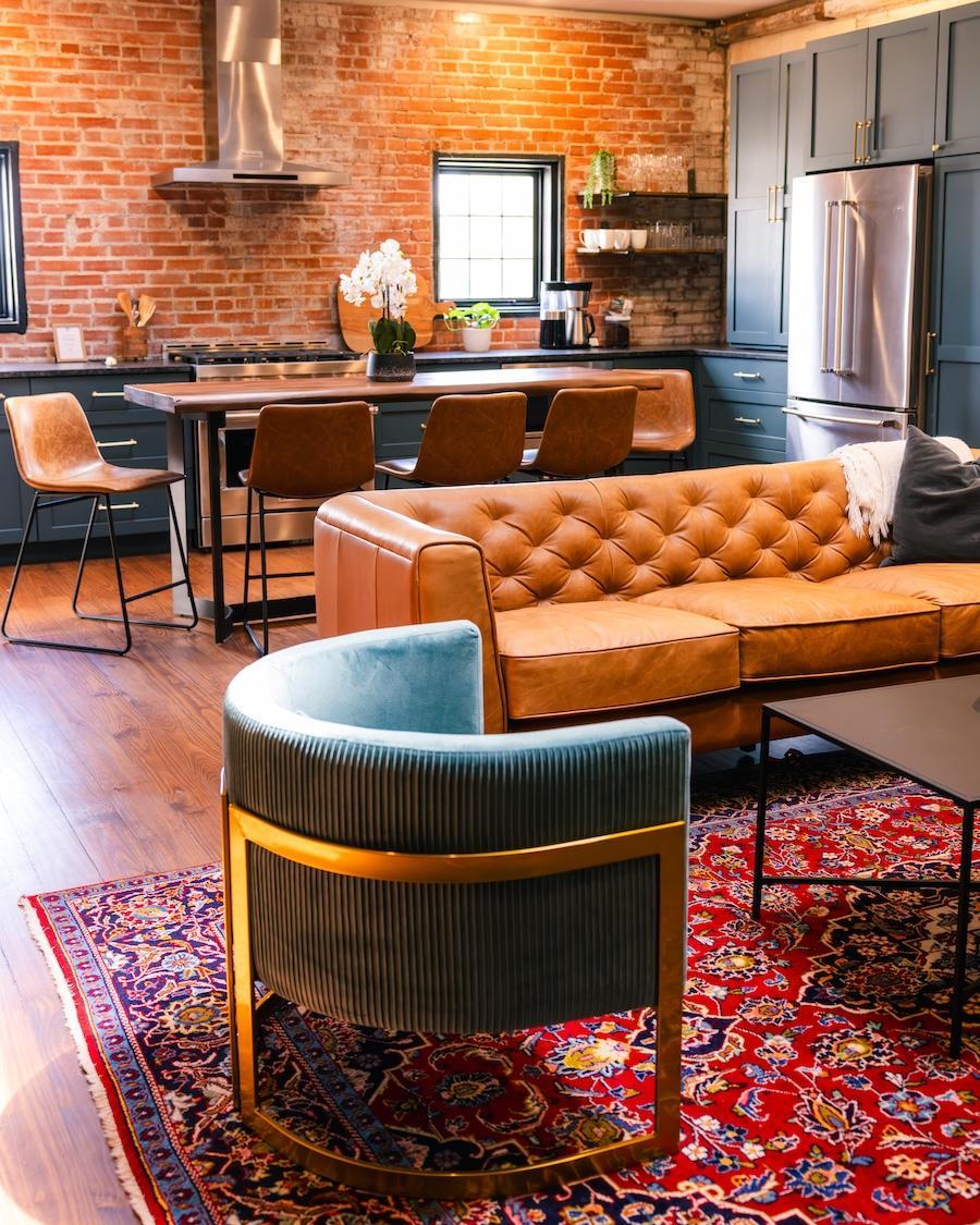 This space is perfect for the bridal party to stay the night before, use as a get ready space and for the couple to stay the night afterwards. It features brick walls and colorful rooms that make for amazing photography.