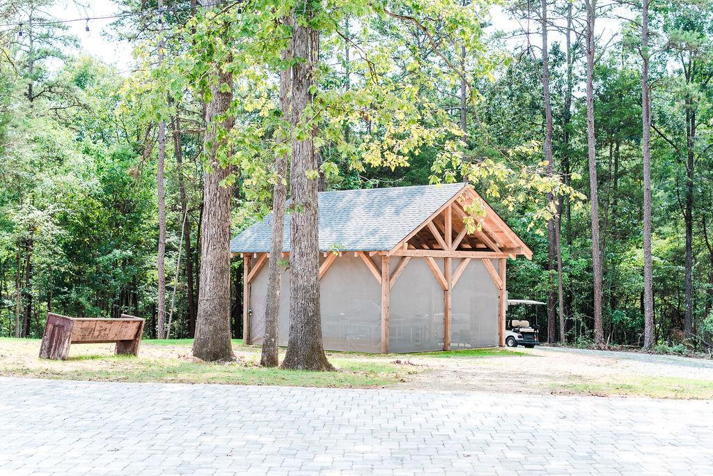 This space features a gorgeous 2400 sq foot outdoor pavilion. The wood from this structure was milled from trees culivated from our property making it so much more special. This space is connected to a 3000 sq foot brick paver area perfect for any event and also overlooks our 1.5 acre pond.