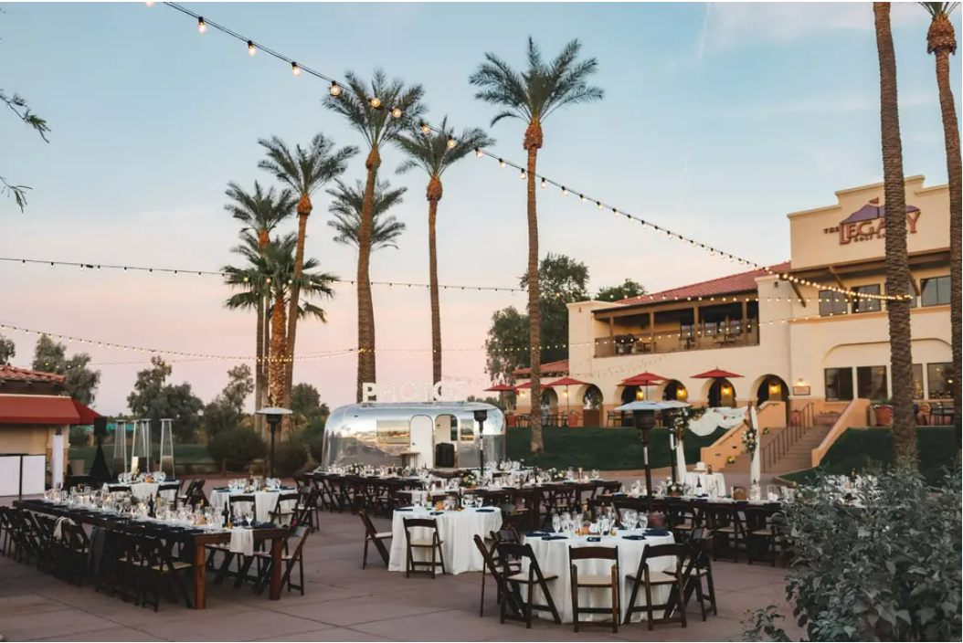 Legacy Golf Club is a wedding venue located in Phoenix, Arizona. The property showcases views of South Mountain and offers multiple spaces with a rustic ambience for your ceremony and reception. The professional staff is happy to assist couples through the planning process, and they strive to create celebrations that are as seamless as possible. Legacy Golf Club sits on over 75,000 acres of land belonging to the Dwight B. Heart estate. The venue has various event spaces for ceremonies and receptions that can be adjusted to align with each couple's unique vision. Their indoor locations can accommodate anywhere from 80 to 250 guests, while the outdoor settings can host up to 350 people. The golf club’s regional, vintage designs are complemented by modern resort amenities, creating a serene setting for any celebration. Our property also features on site accommodations for you and your guests!