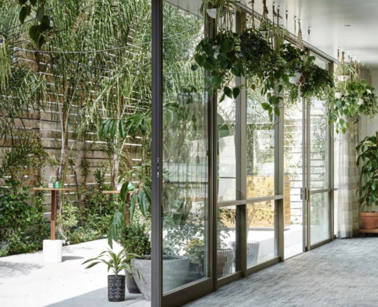 Designed by architect Sean Knibb, the serene garden is the perfect escape for a breather or private conversation. Movable glass walls can create a unique indoor/outdoor space that can accommodate a reception for up to 100.
