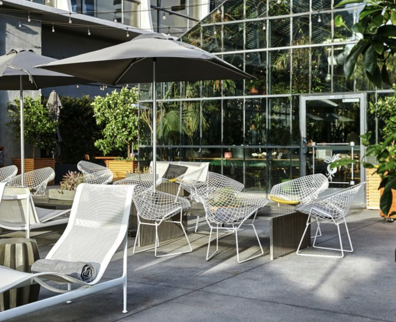 The LINE LA’s Motor Court is equally special as it is versatile. A beautiful back drop of tall California palms, perfectly manicured hedges, and the iconic Rose Window at the neighboring Oasis Church deliver an incomparable al fresco experience for up to 300 guests.