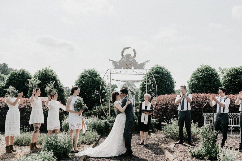 The Little Herb House is a rustic wedding venue in Raleigh, North Carolina. You and your guests will enjoy the charm of their 50-year-old original barn, a barnwood serving bar that features Mason jar pendant lights and curly willow entangled with twinkle lights. They also offer breathtaking views overlooking their pond. If your wedding day dream includes a rustic barn, a green pasture, a tranquil pond, and lush, fragrant gardens, then The Little Herb House is the perfect spot for you. Book now for your gorgeous wedding in the gardens, pastures and barns of The Little Herb House!